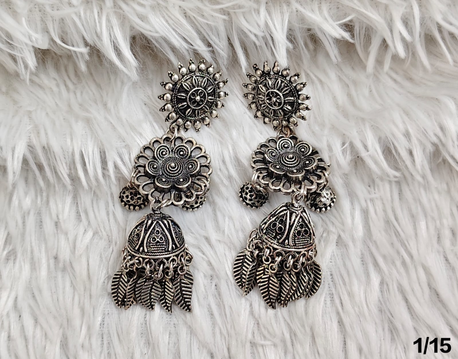 Elevate your look with these stunning Boho Silver Leaf Dangle Earrings. Crafted with intricate floral and leaf motifs, these oxidized silver jhumkas add a touch of vintage charm and ethnic elegance to any outfit. Perfect for festive occasions, casual outings, or traditional events, these lightweight earrings offer both style and comfort. Pair them with your favorite ethnic wear or modern ensembles for a unique statement piece.