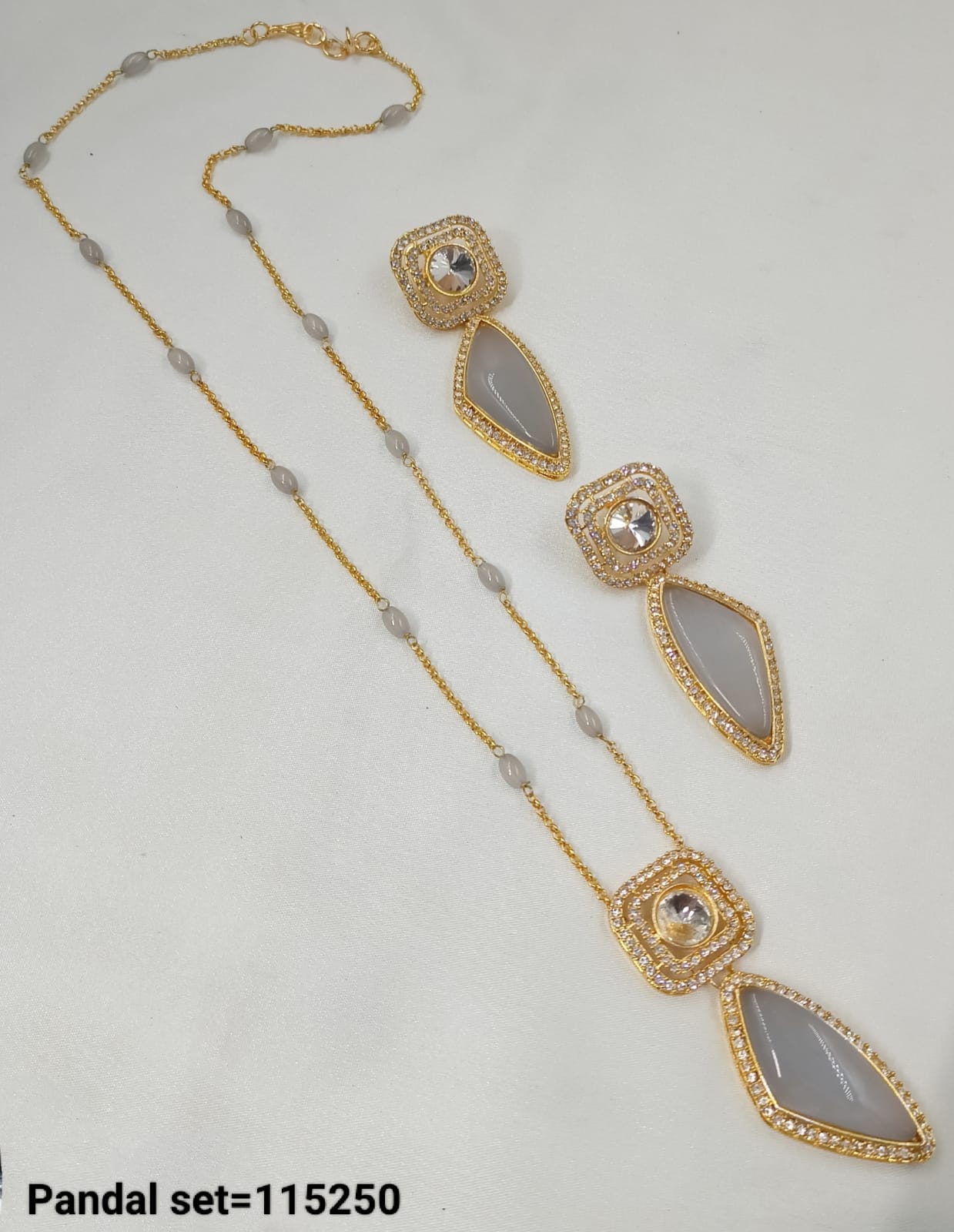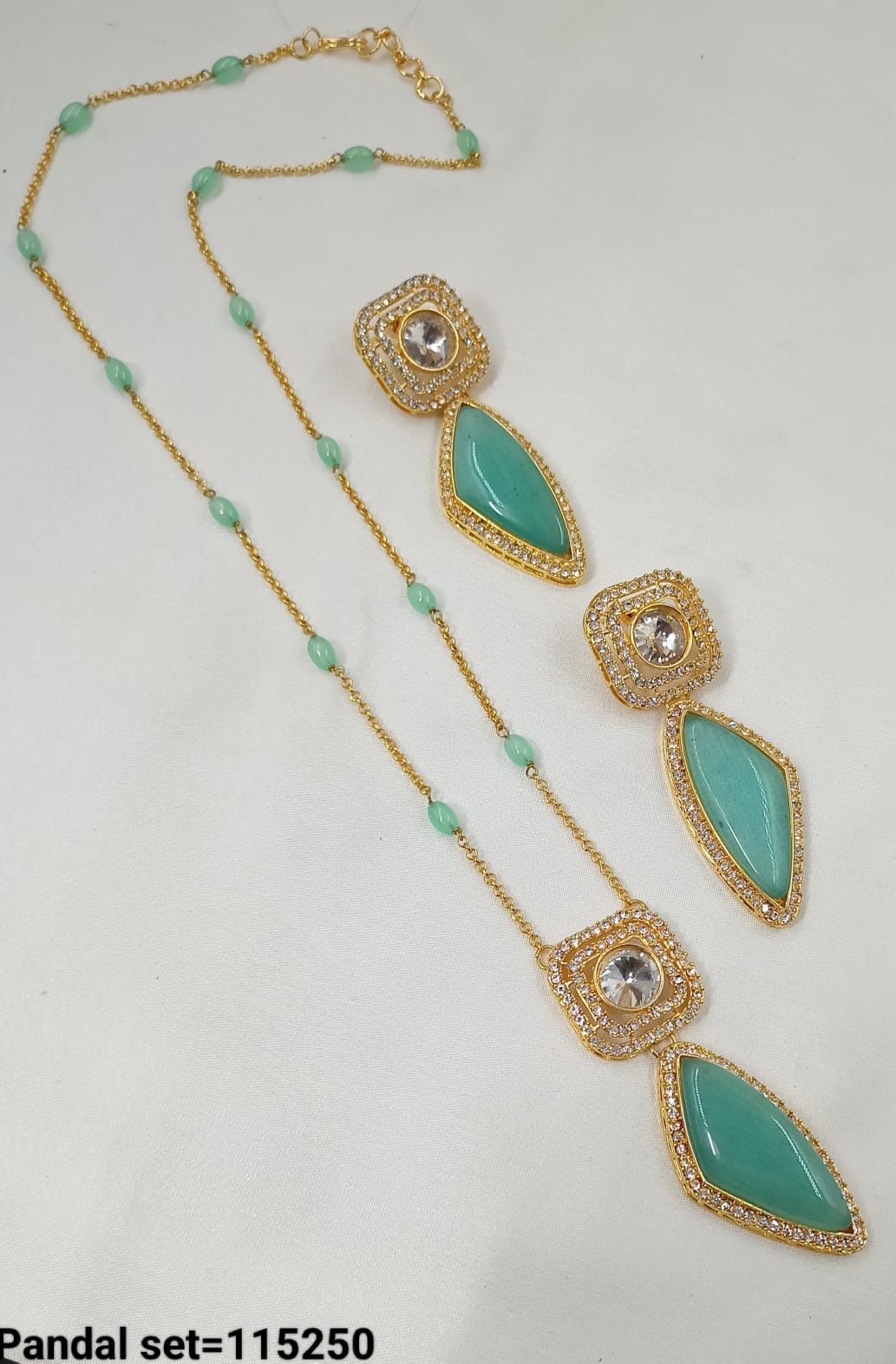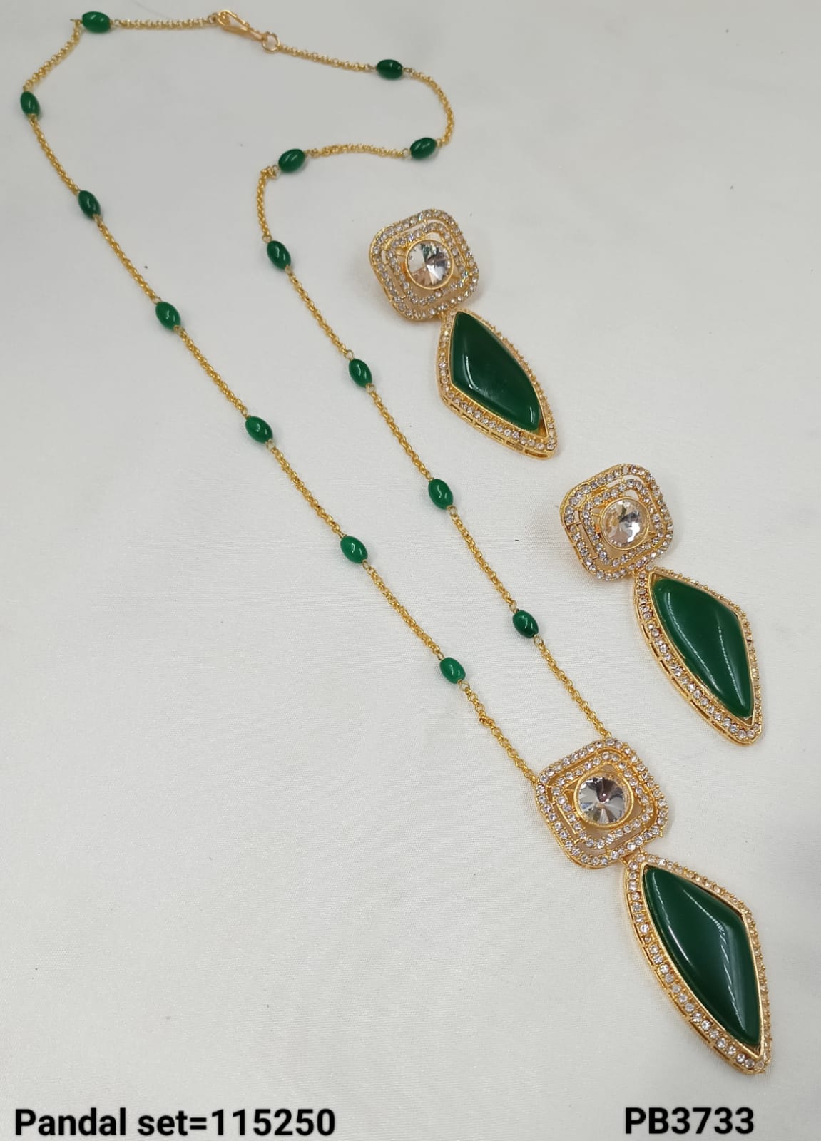 Elevate your elegance with this exquisite Kundan pendant set, featuring a crystal-adorned design finished in luxurious gold plating.