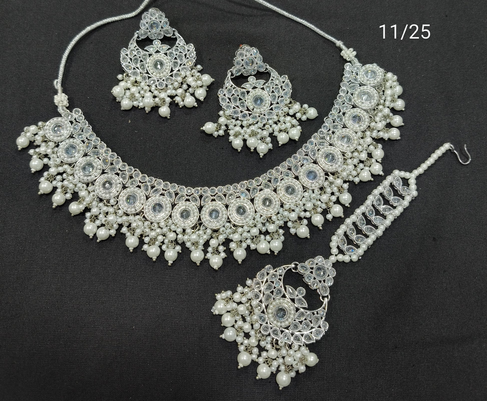 Work: Handcrafted CZ stone detailing with pearl and bead accents