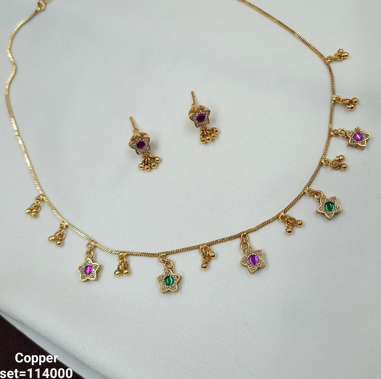 CZ Gold Plated Choker Necklace Jewellery Set With Earrings