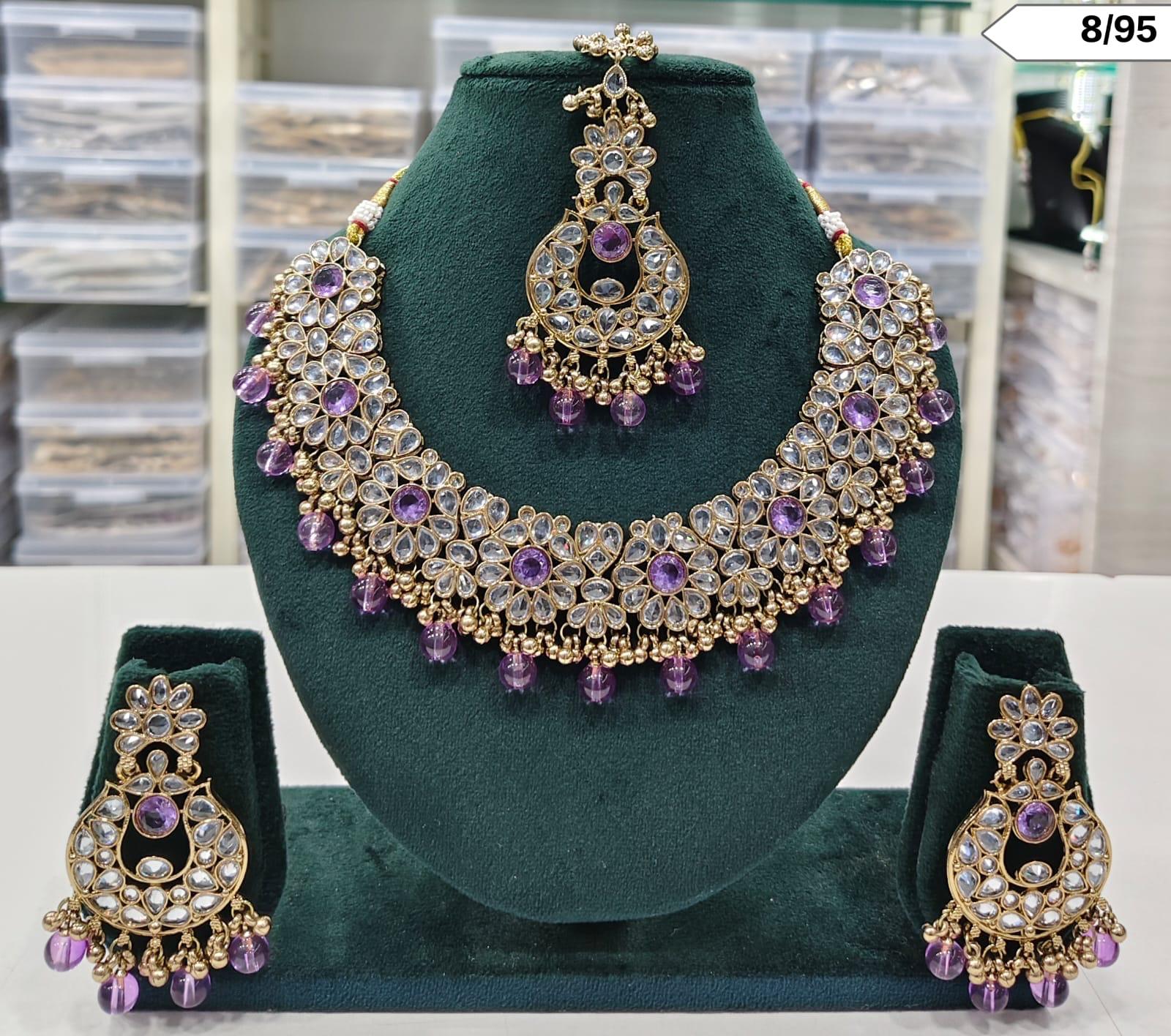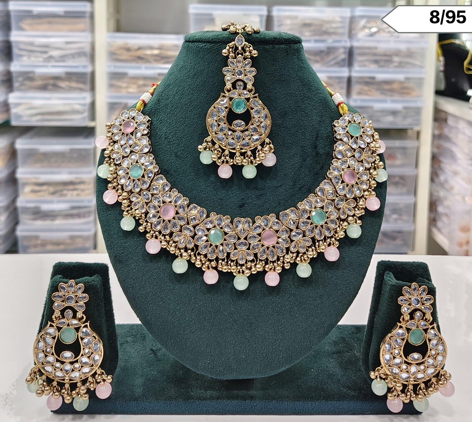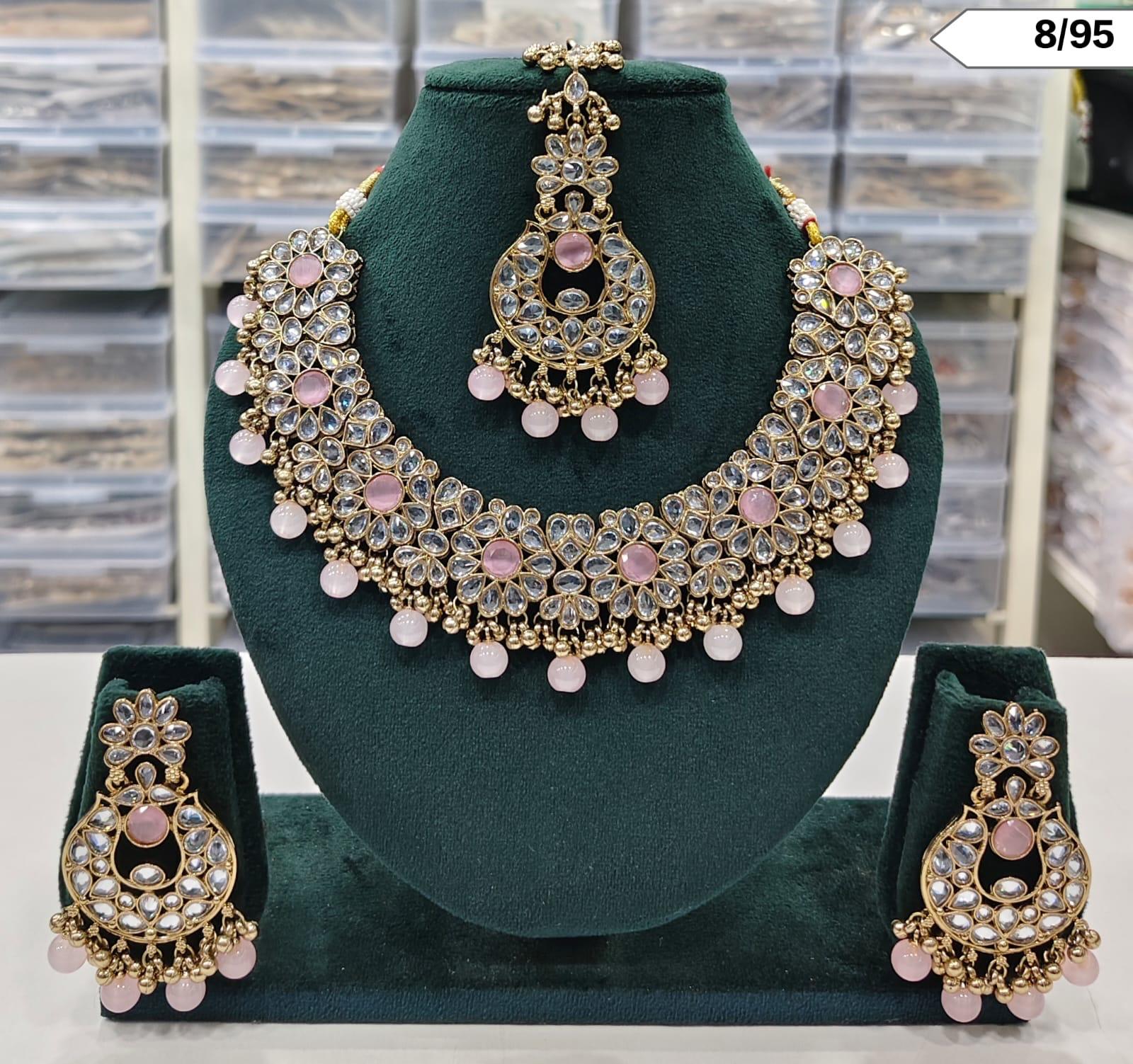 CZ Stone Floral Choker Necklace Set with Matching Earrings and Maang Tikka – Lucentemarket