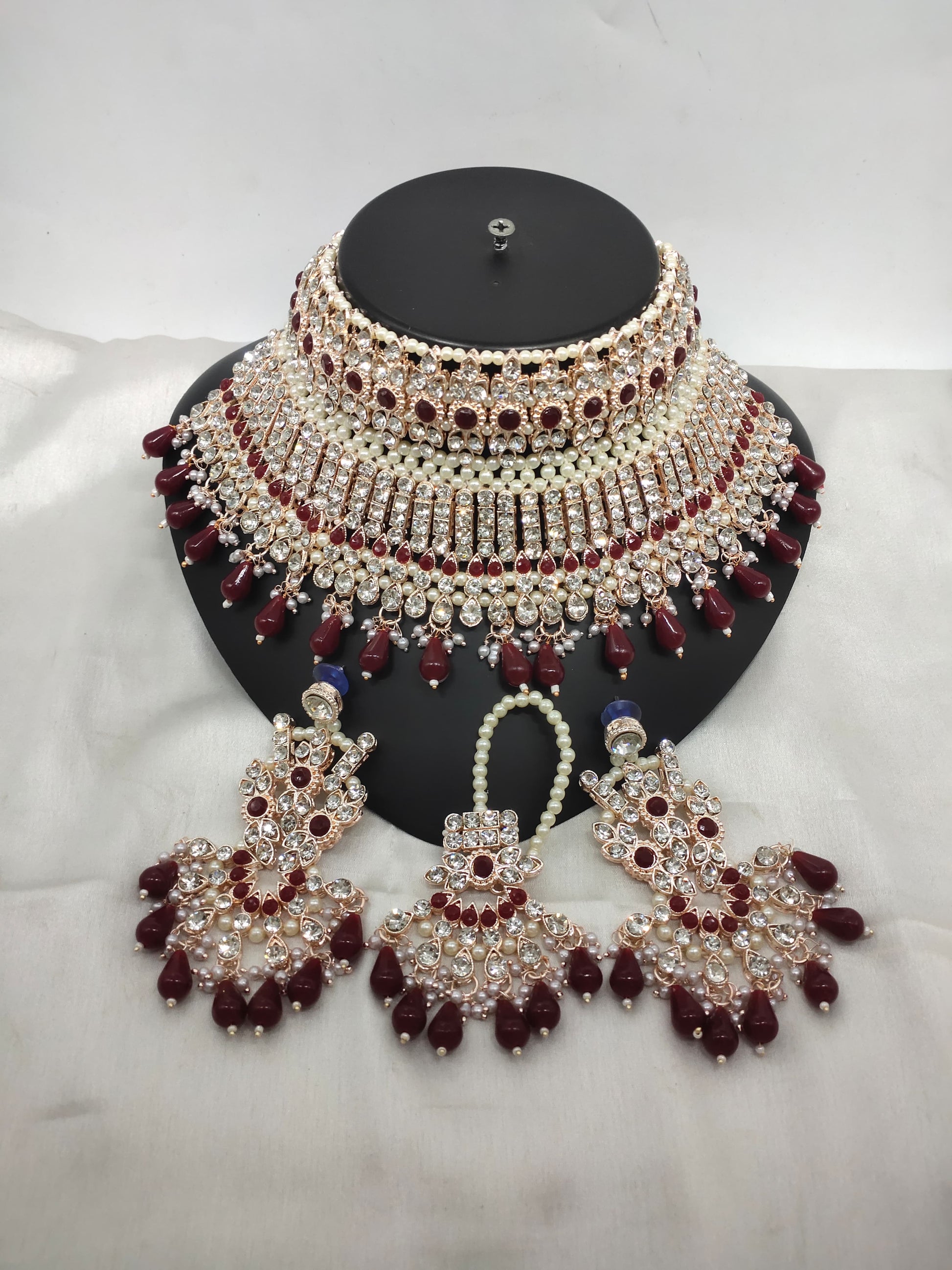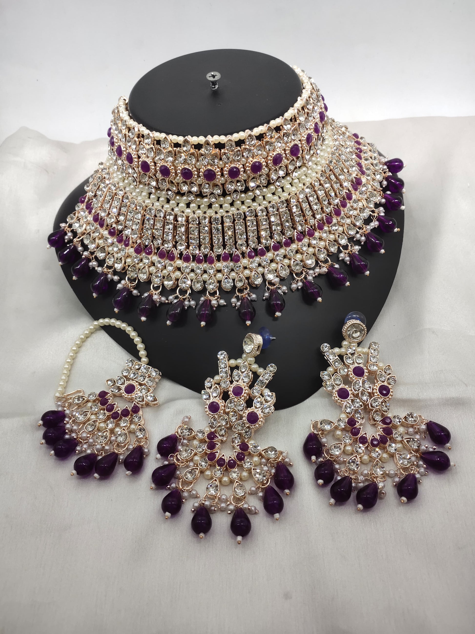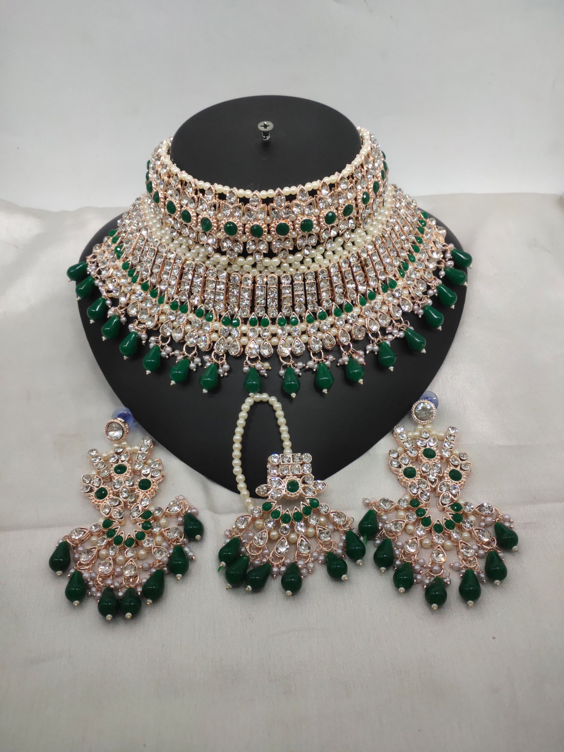 CZ Stone Rose Gold Plated Choker Jewellery Set