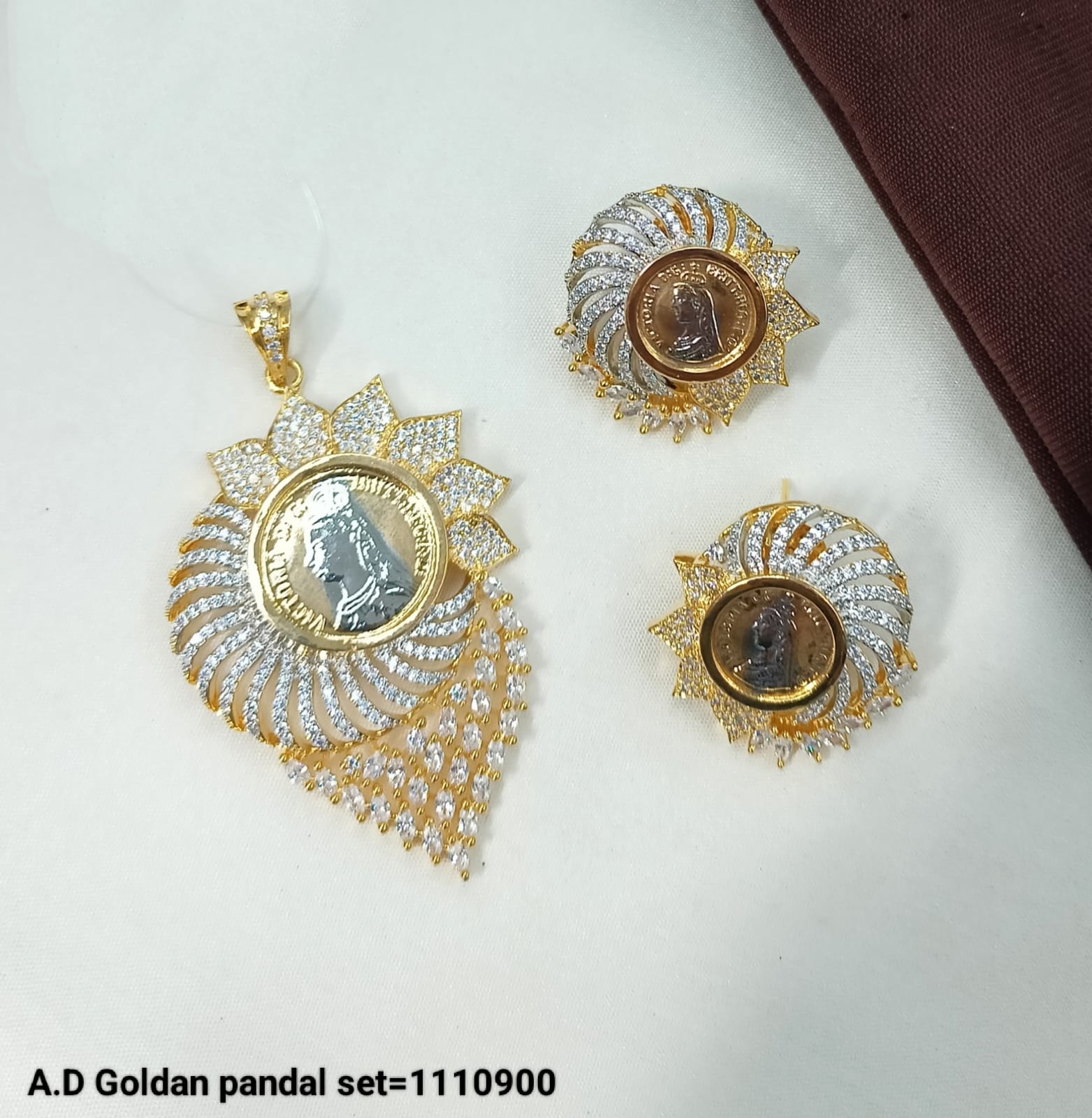 Elegant A.D. Golden Pandal Pendant & Earring Set – Sparkling Dual-Tone Design