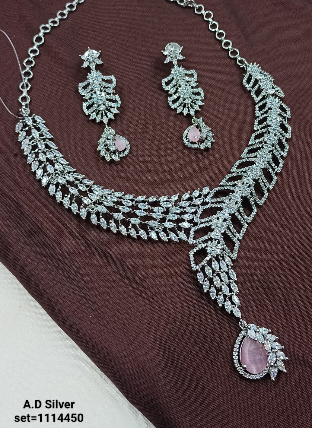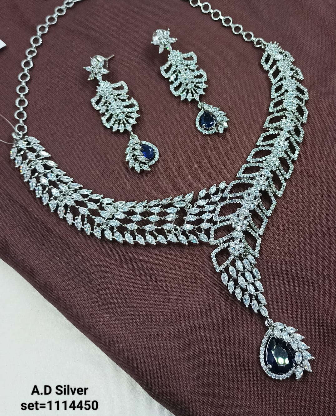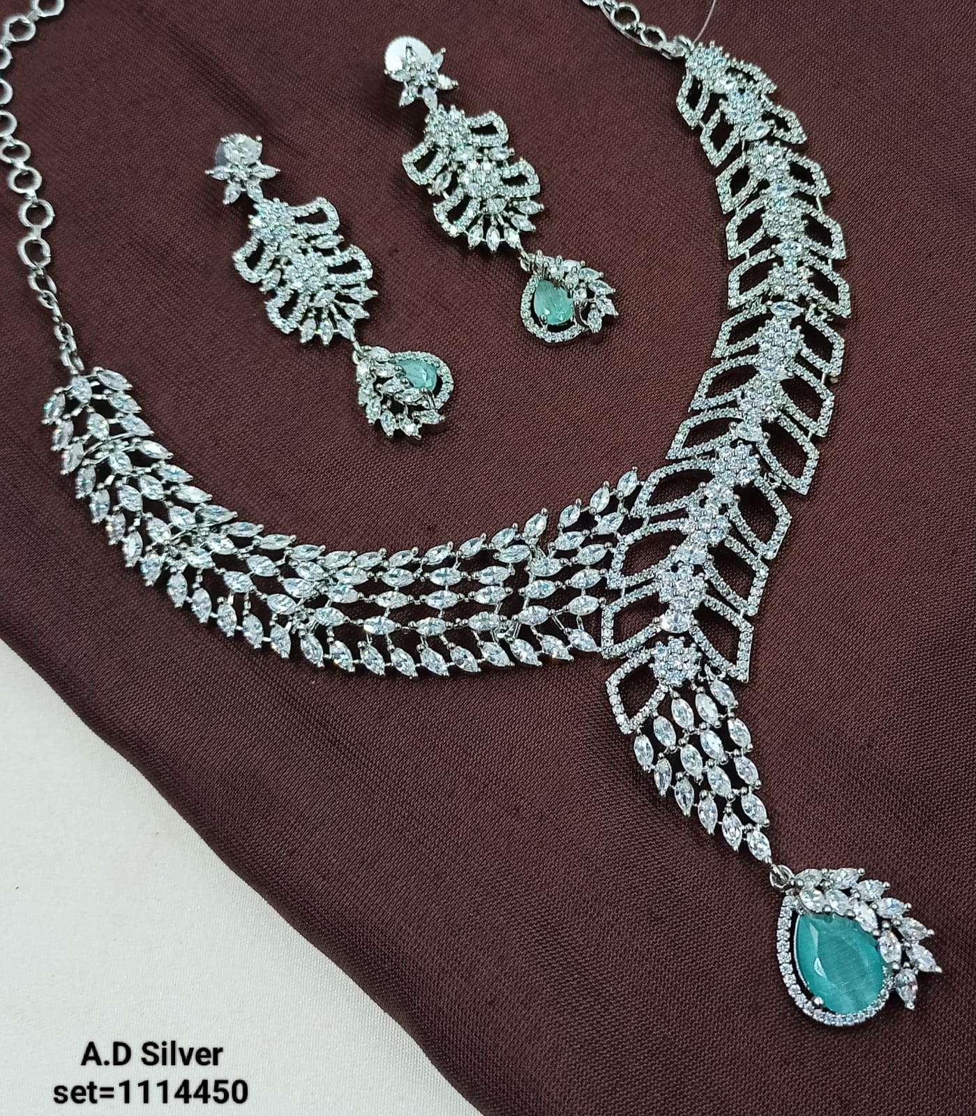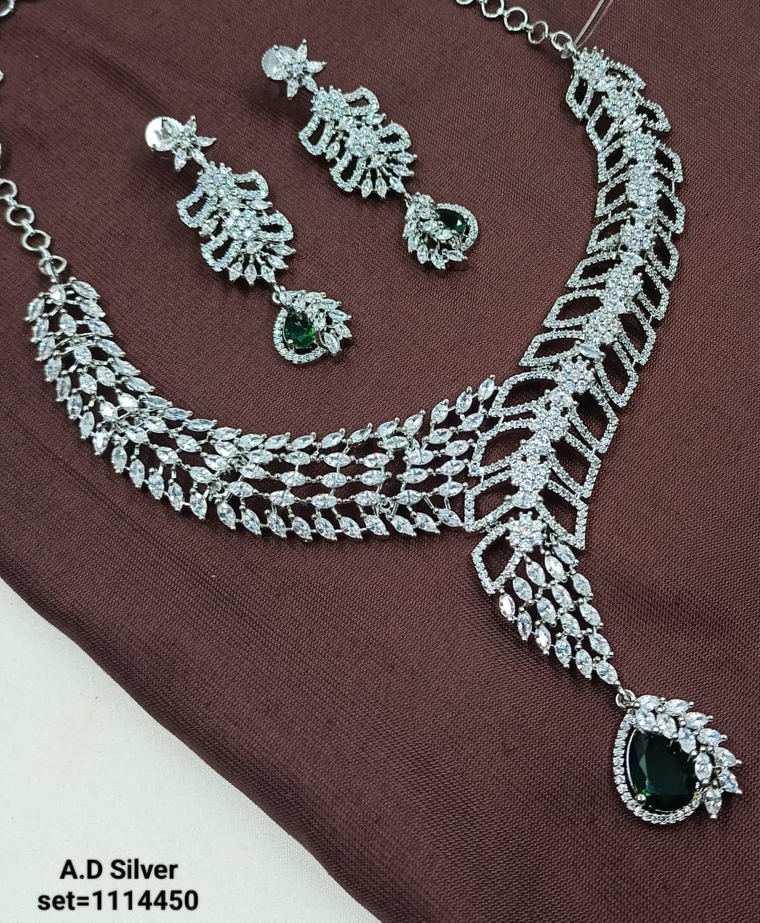 Elegant AD Silver Necklace and Earring Set – Stunning Design with Gemstone Accents