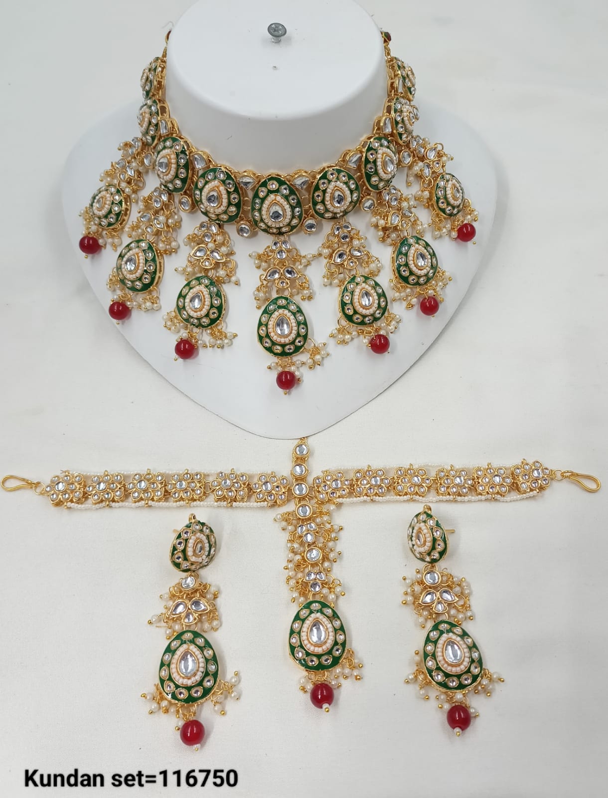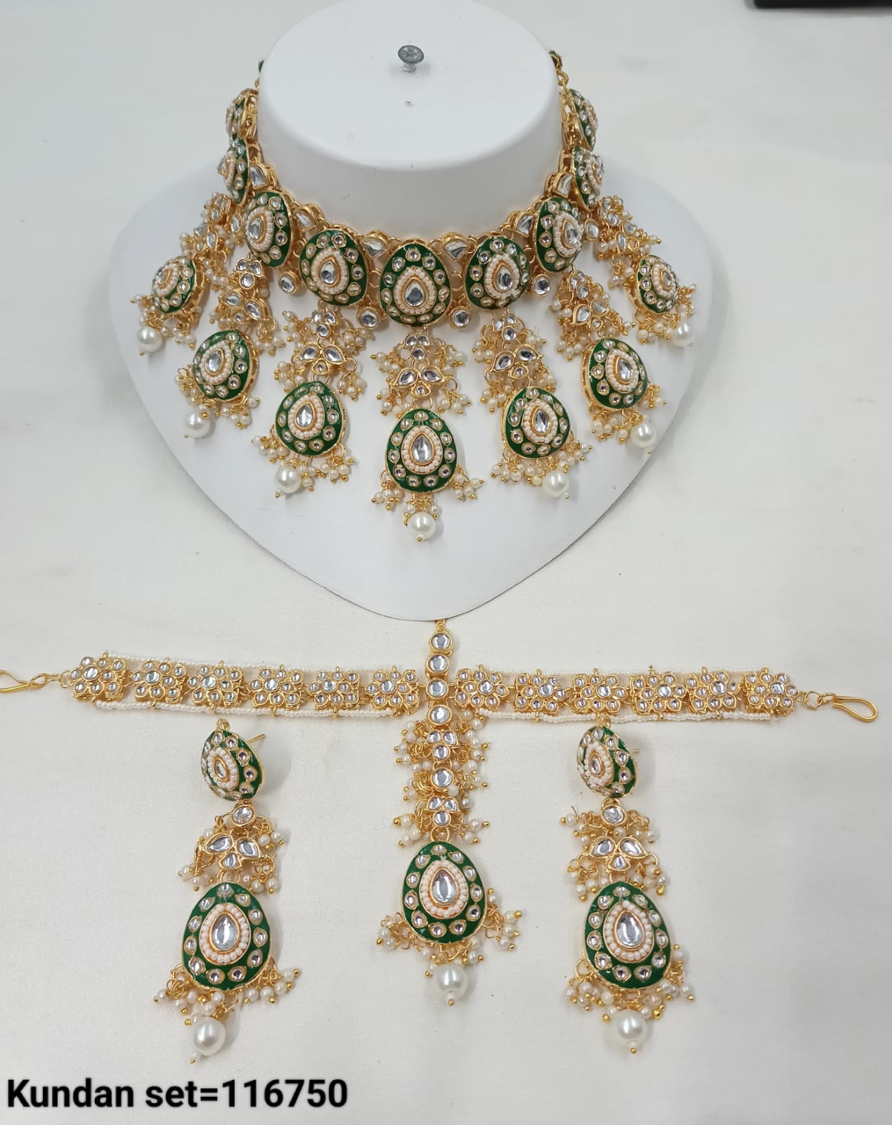 Elevate your bridal look with this exquisite CZ (Cubic Zirconia) jewelry set, crafted for timeless elegance and regal charm. Featuring a beautifully designed choker-style necklace, matching earrings, and a stunning maang tikka, this set is perfect for weddings, receptions, and other grand occasions. Whether you're a bride or attending a festive celebration, this set adds a luxurious touch to any traditional or fusion outfit.