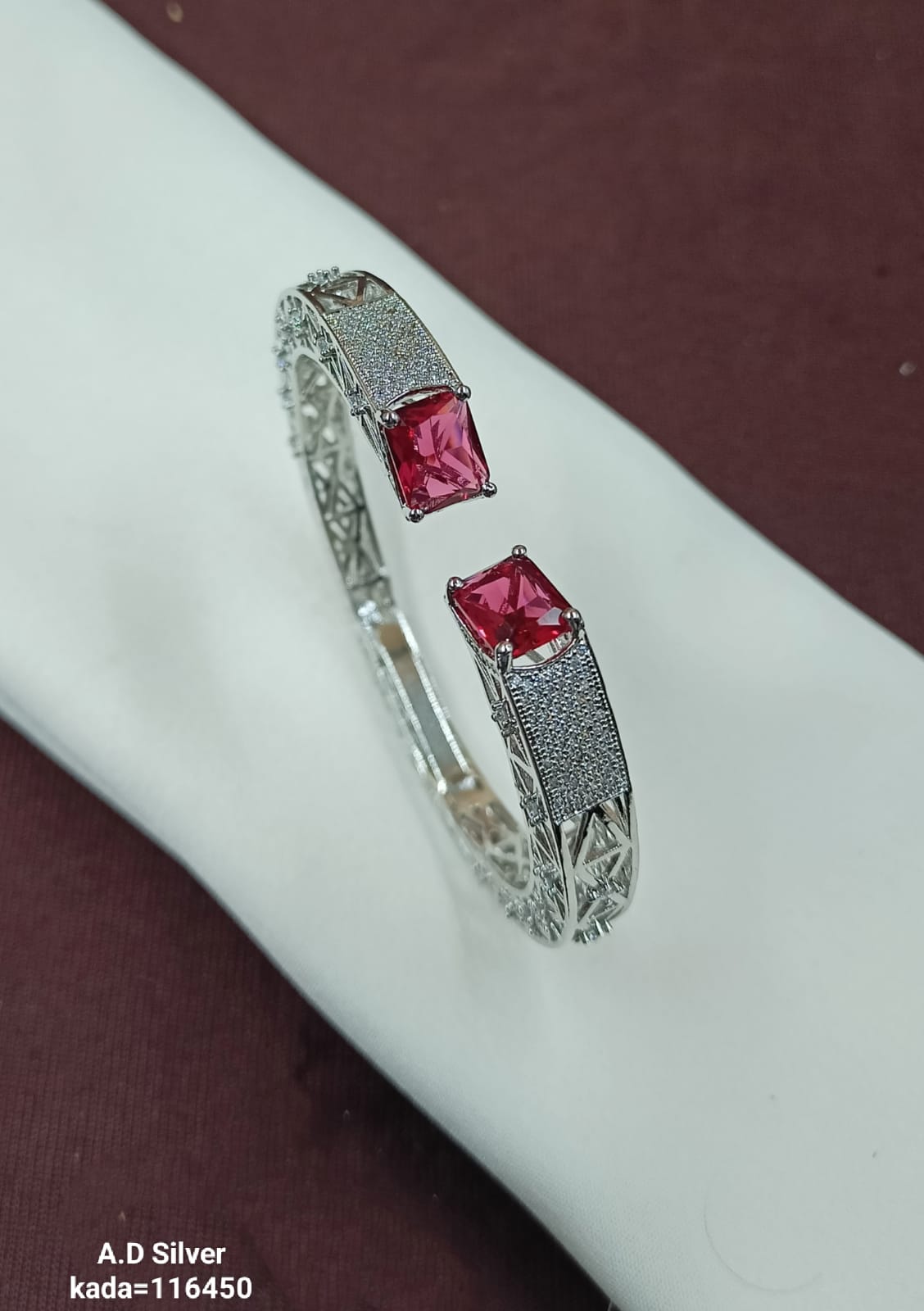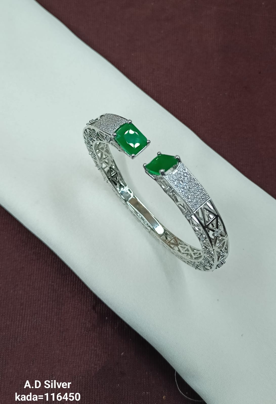 Add a touch of sophistication to your jewelry collection with this elegant designer AD stone kada. Crafted with intricate detailing and a high-quality silver finish, this piece blends traditional charm with modern elegance. The standout AD stones and precise craftsmanship make it perfect for festive occasions, weddings, or daily wear with a stylish twist. Lightweight yet eye-catching, this kada is designed to make a statement.
