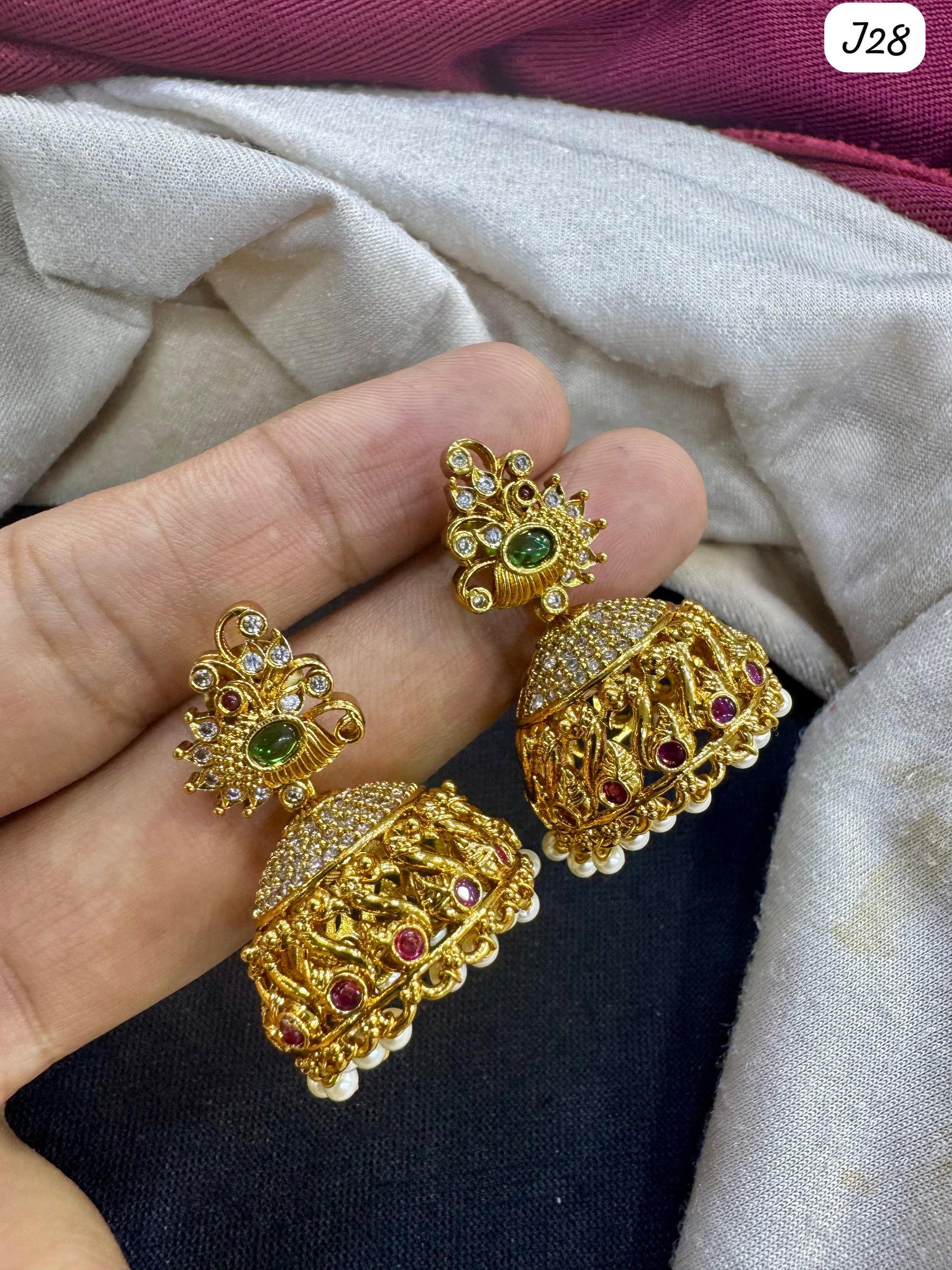 Design: Traditional Jhumka with intricate carvings and filigree work