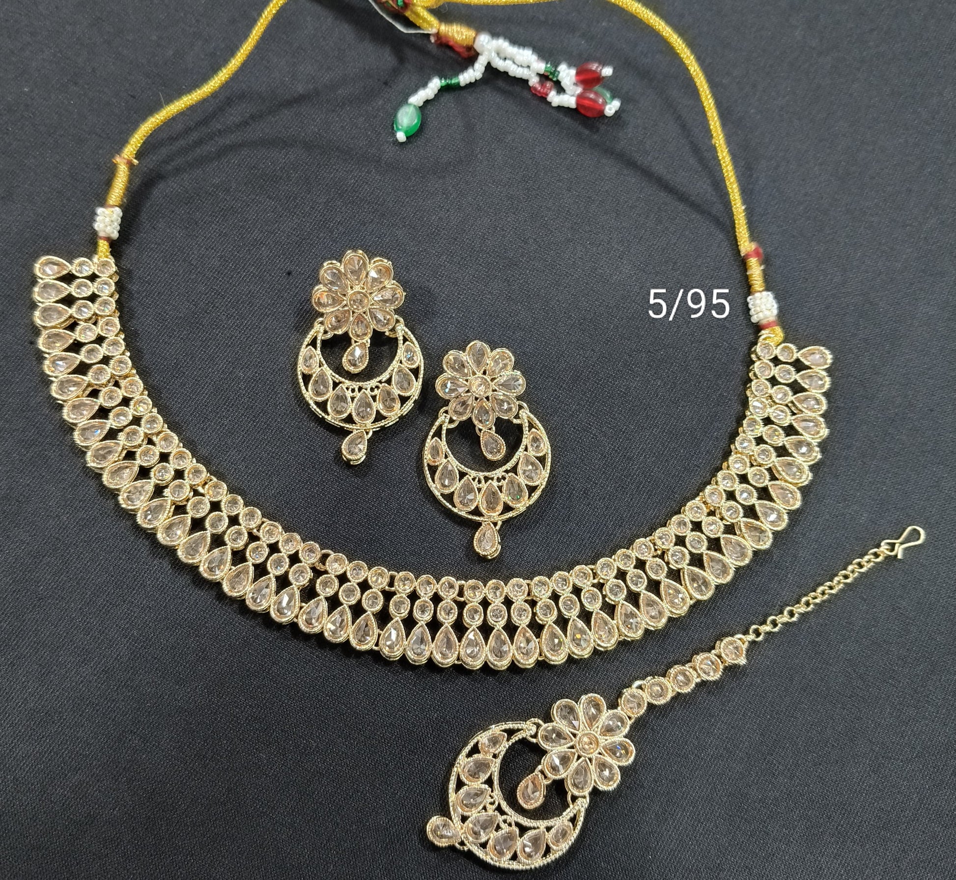 • Design: Traditional choker necklace with matching chandbali earrings & mangtika
