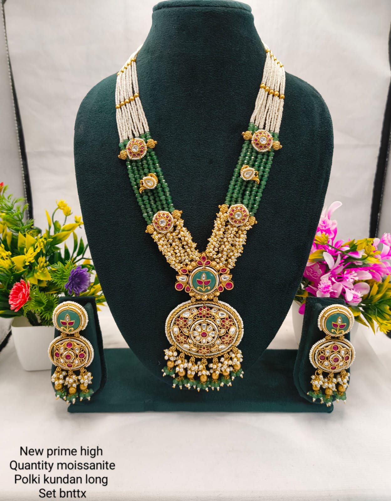Elegant Moissanite Polki Kundan Long Necklace Set – Premium Quality Jewelry