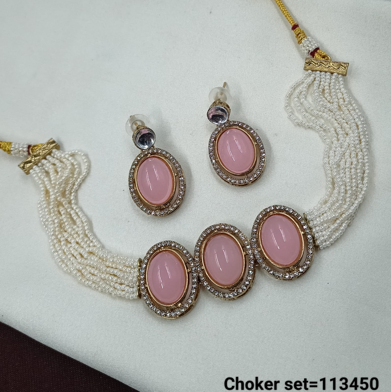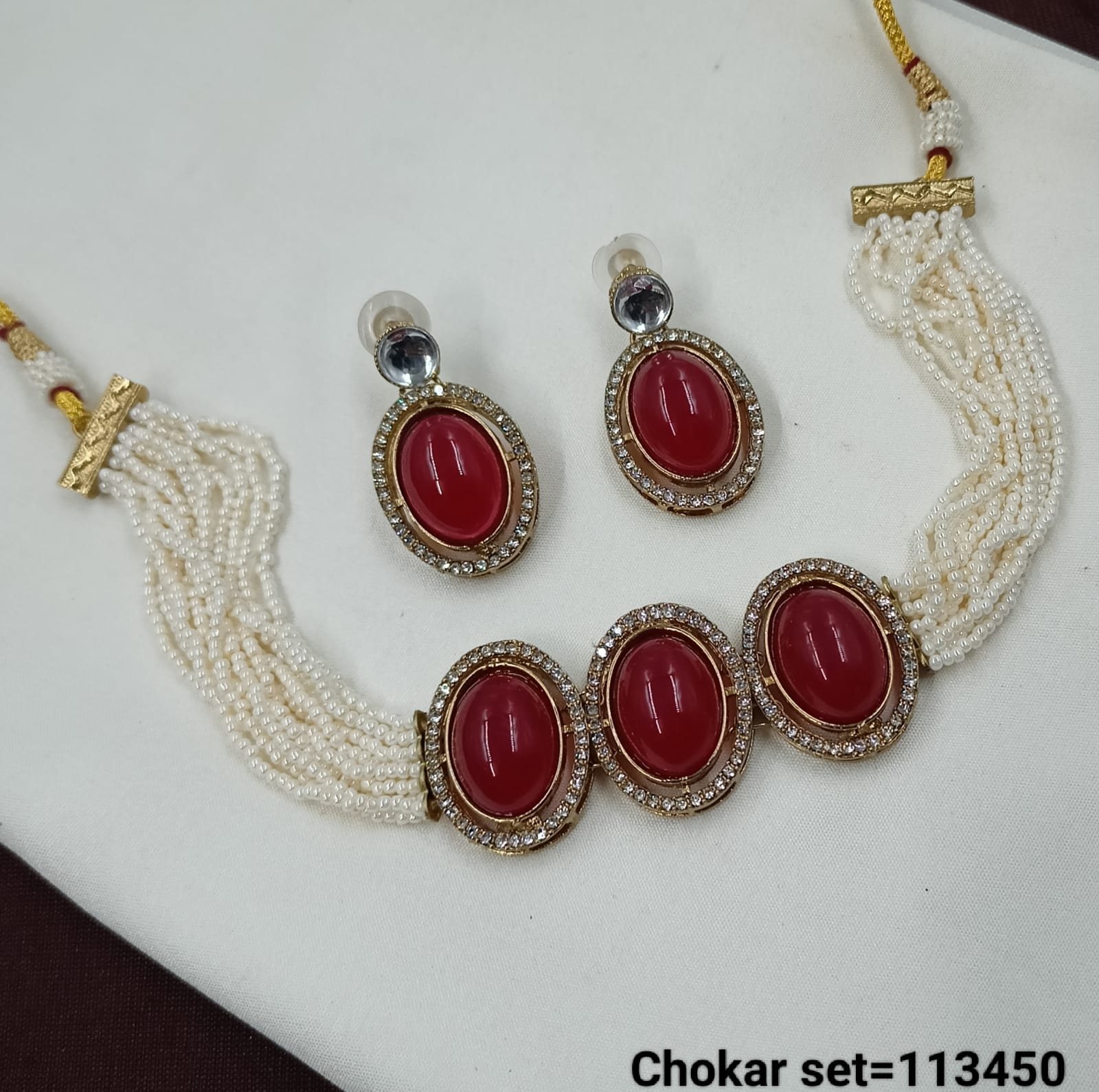 Elevate your style with this elegant multi-strand pearl choker set, featuring beautifully crafted oval gemstone accents framed with sparkling details. Perfect for special occasions or adding a touch of sophistication to everyday wear, this set combines timeless charm with modern elegance. The lightweight design ensures comfort without compromising on style.