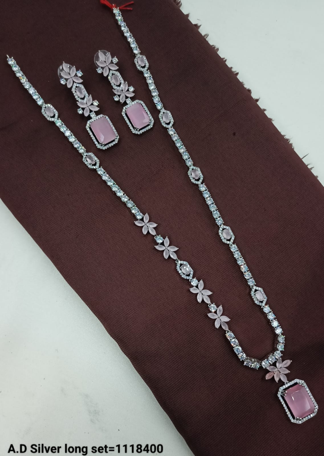 Elevate your elegance with this exquisite Pink Gemstone and Silver Long Necklace Set. Crafted with sparkling silver and adorned with delicate pink gemstones, this set includes a beautifully designed long necklace and matching earrings, perfect for adding a touch of sophistication to any outfit. Whether it’s for a special occasion or everyday glam, this set effortlessly combines timeless beauty with modern style.