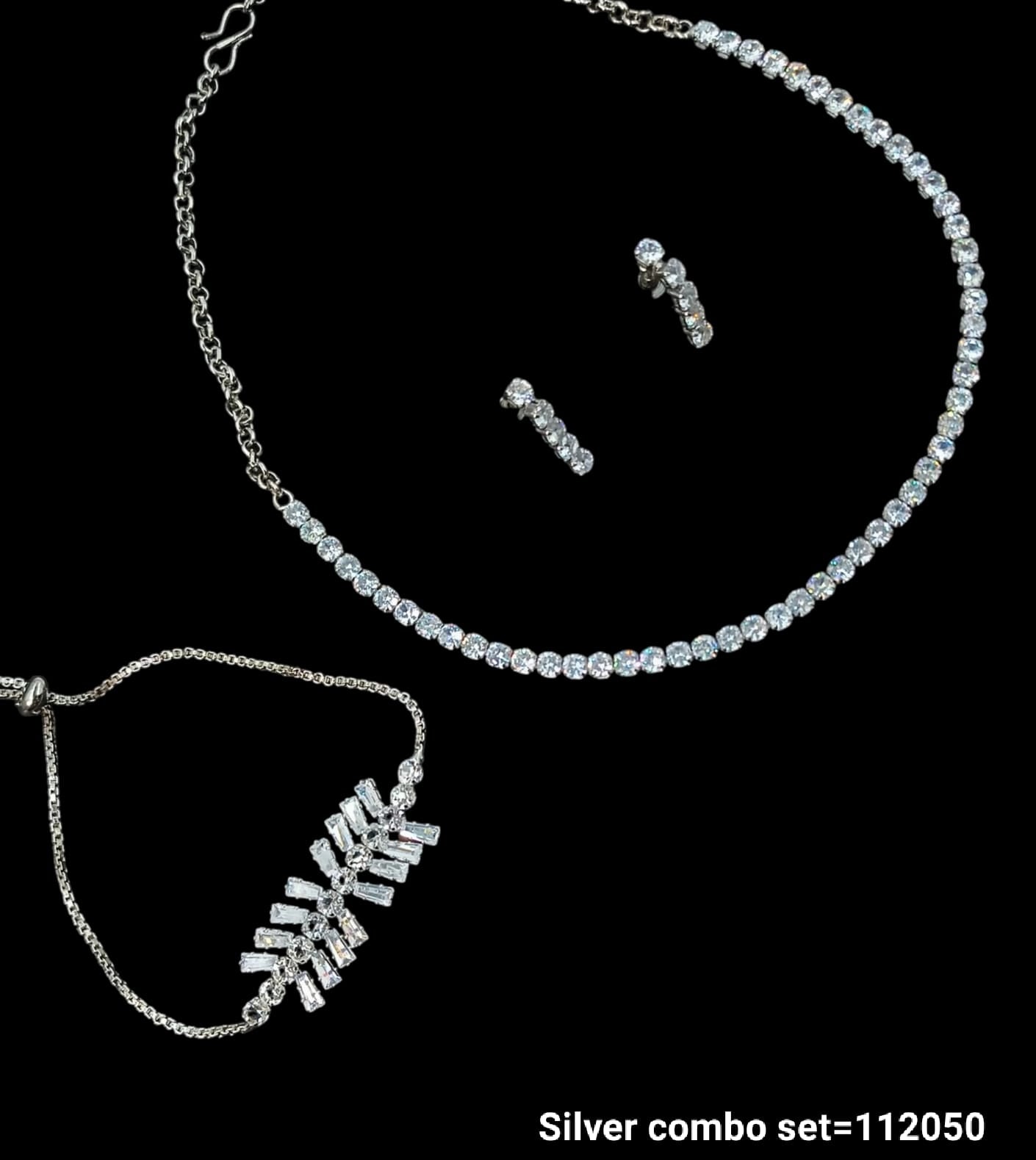 Elegant Silver Combo Jewelry Set – Necklace, Bracelet & Earrings with Sparkling Crystals