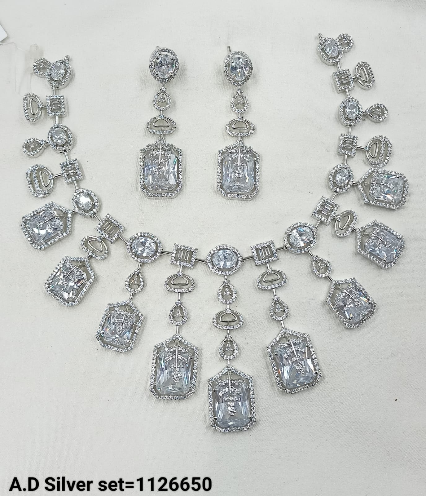 Elegant Silver-Plated AD Necklace Set – Bridal & Party Wear