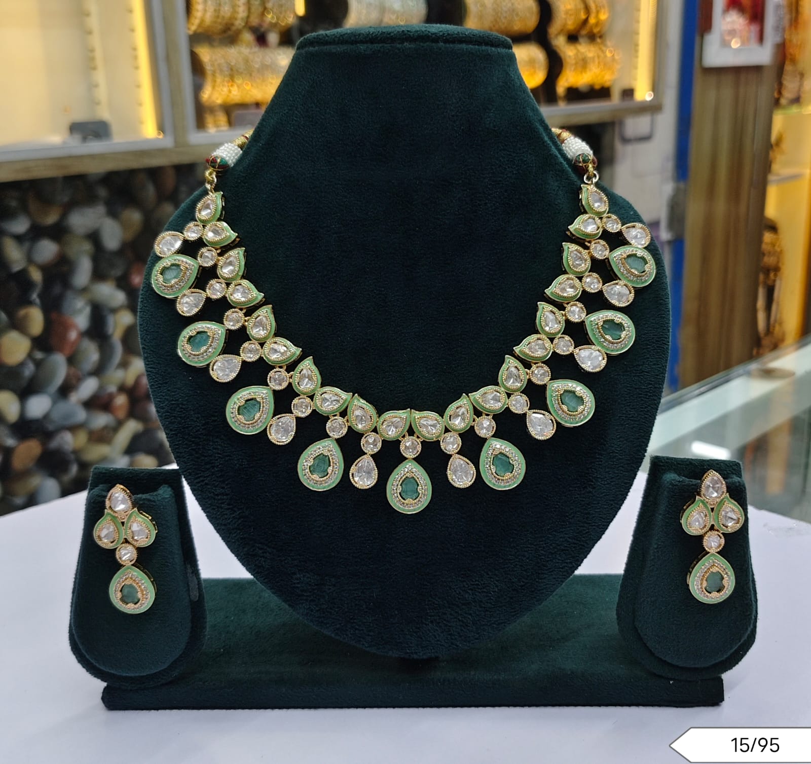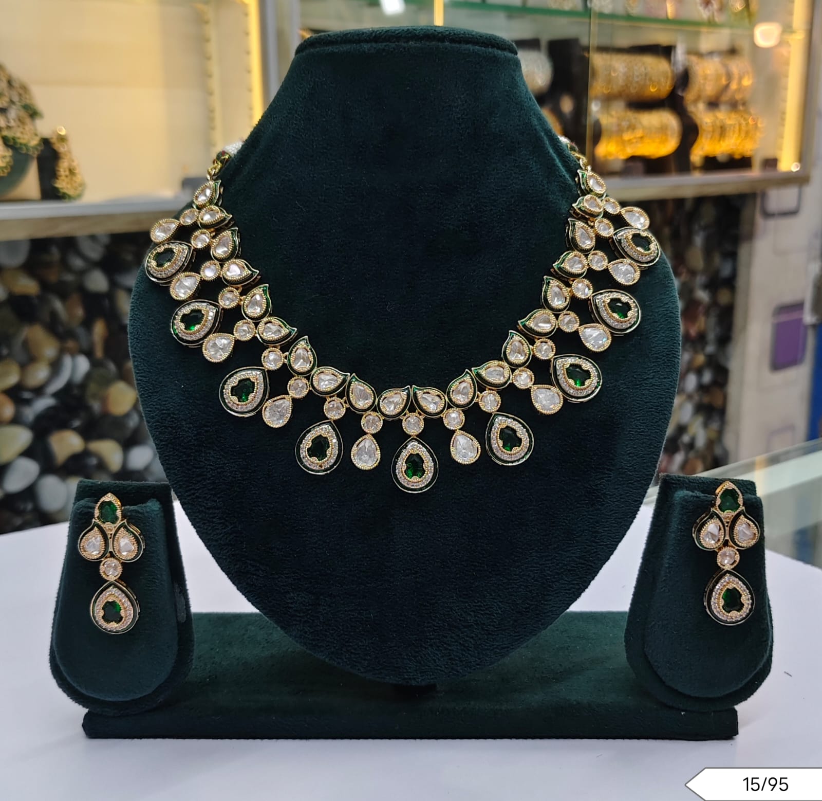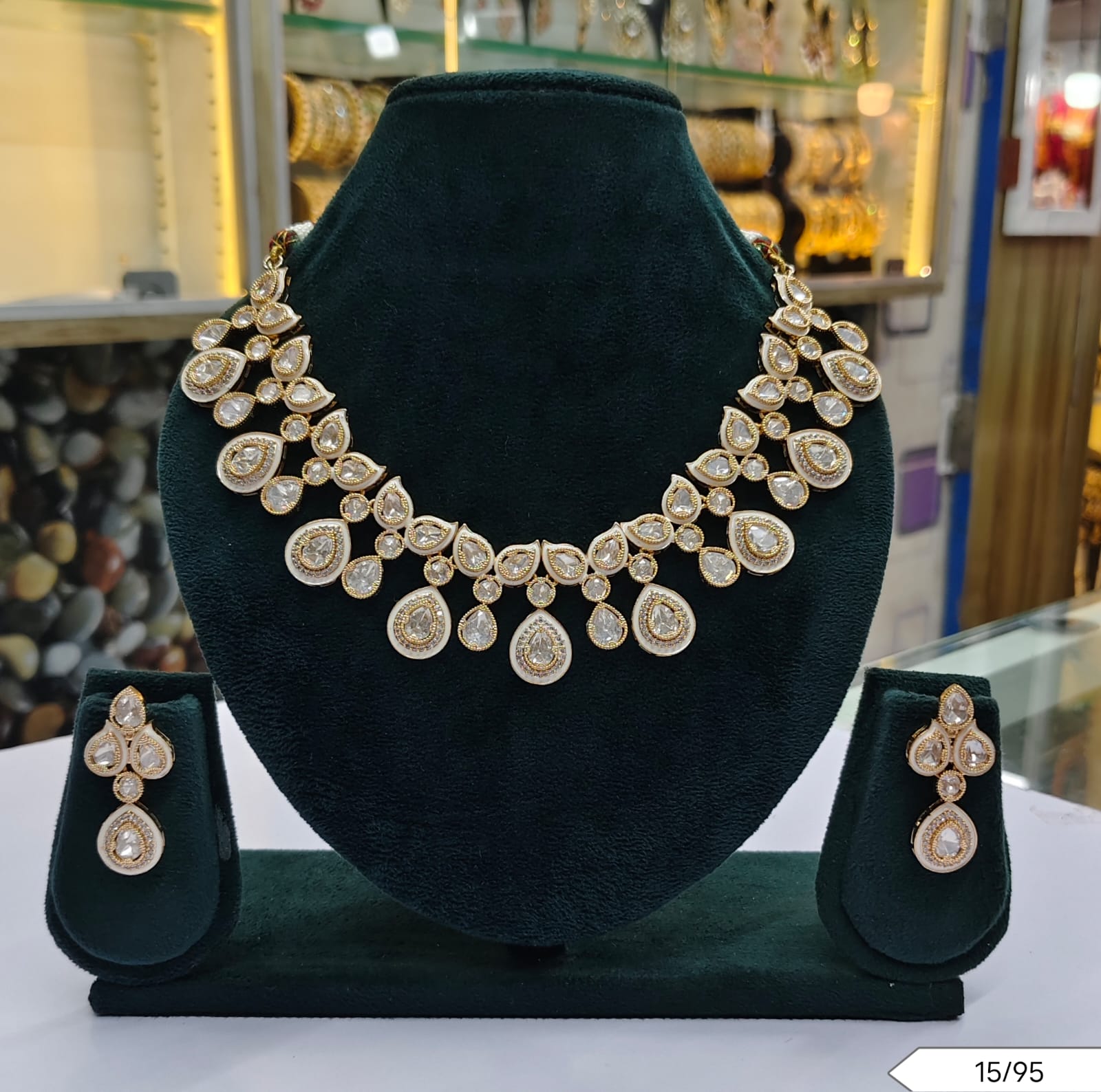 Elegant Tear-Drop Kundan Necklace & Earring Set
