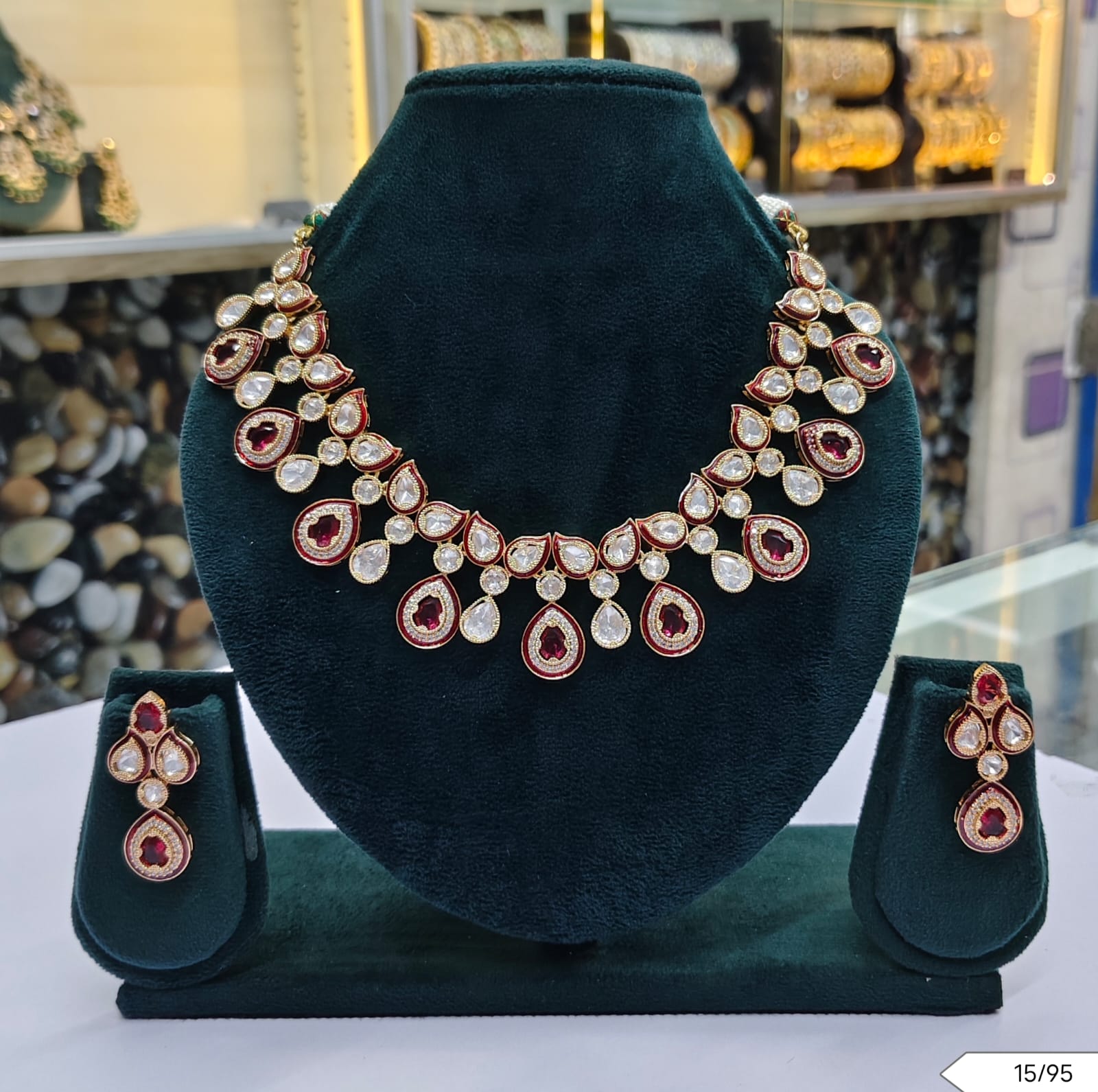 Elevate your ethnic ensemble with this exquisite Tear-Drop Kundan Necklace & Earring Set. Handcrafted to perfection, this statement set features delicate kundan stones arranged in an elegant teardrop pattern. Ideal for weddings, festive occasions, or traditional events, this set is designed to make you shine with grace and charm. The lightweight feel ensures all-day comfort without compromising on style.