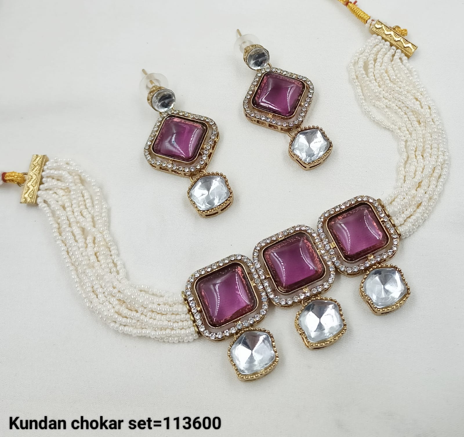 Elevate your style with this elegant traditional choker set, featuring intricately designed square pendants paired with multi-strand beads. Perfect for special occasions or festive celebrations, this set adds a touch of sophistication and charm to any outfit. Lightweight and comfortable to wear, it complements both ethnic and contemporary looks effortlessly.