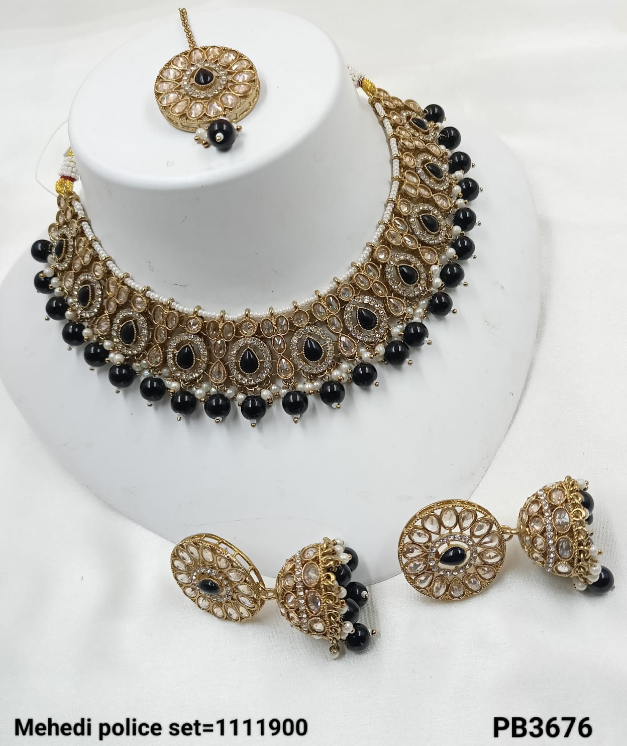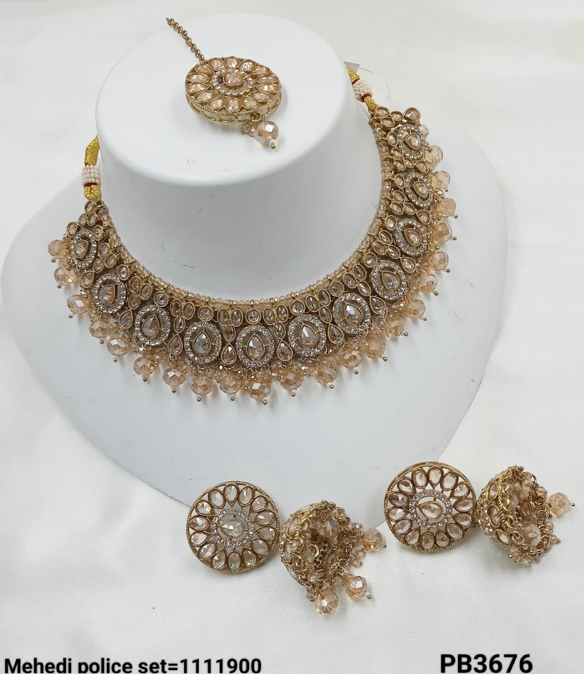 Elevate your elegance with this exquisite antique gold-plated choker necklace set, designed to add a timeless touch to any ensemble.