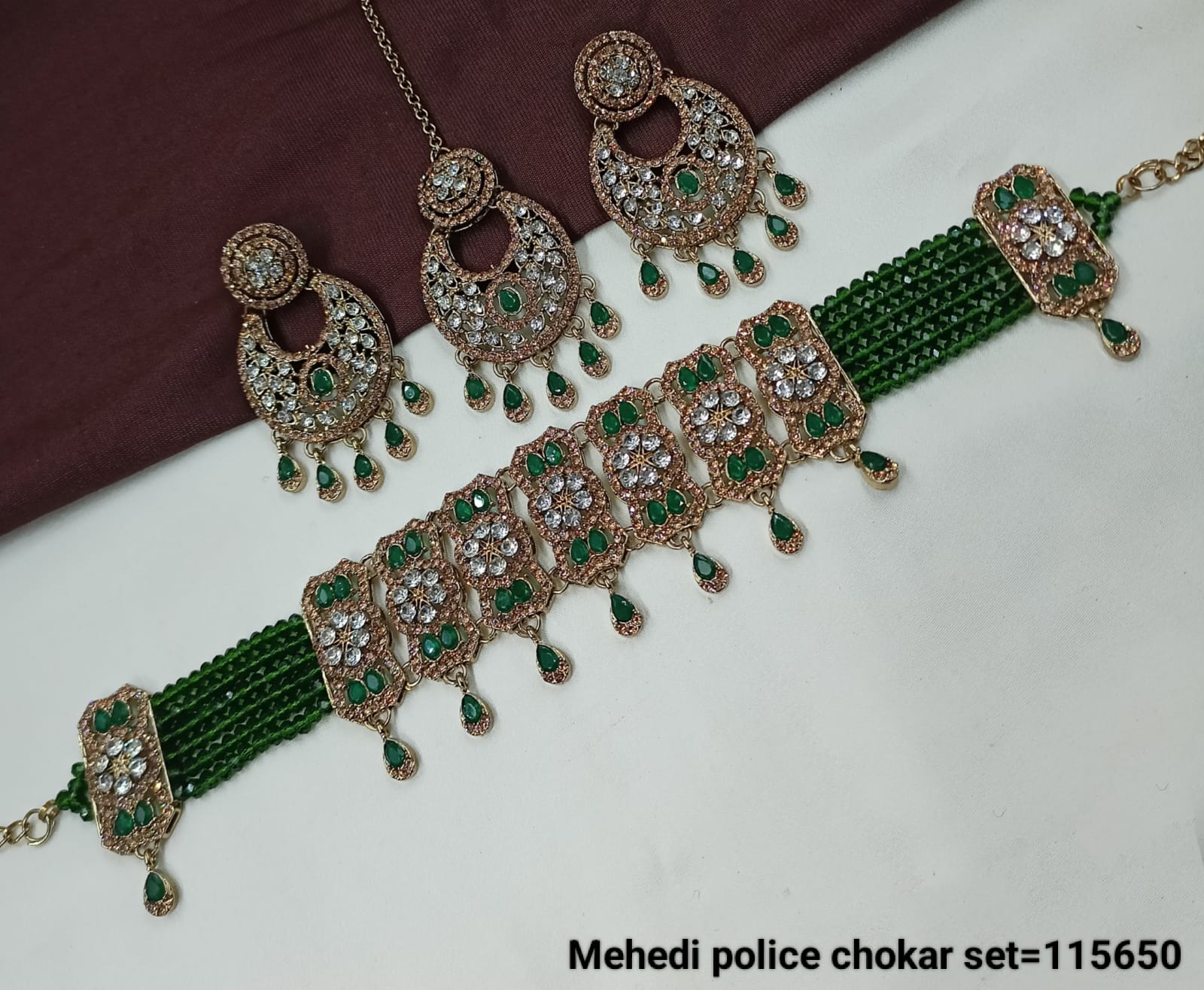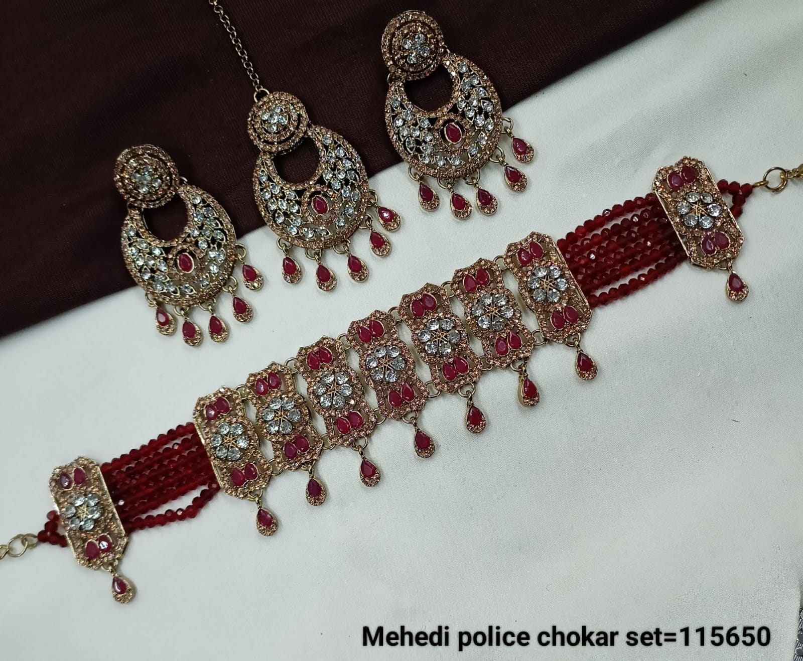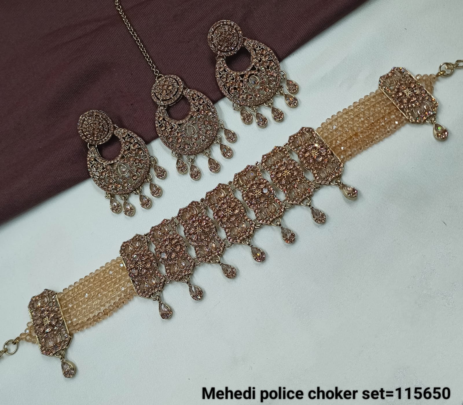 Elevate your festive attire with this exquisite choker and earrings set, featuring an antique gold-plated finish that adds timeless elegance. Expertly crafted to complement traditional and contemporary styles, this set offers a perfect balance of sophistication and charm. Ideal for special occasions, it enhances your look with a subtle yet striking shimmer, ensuring you stand out with refined grace.