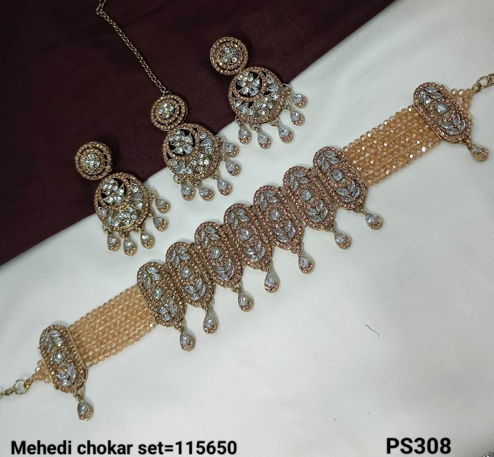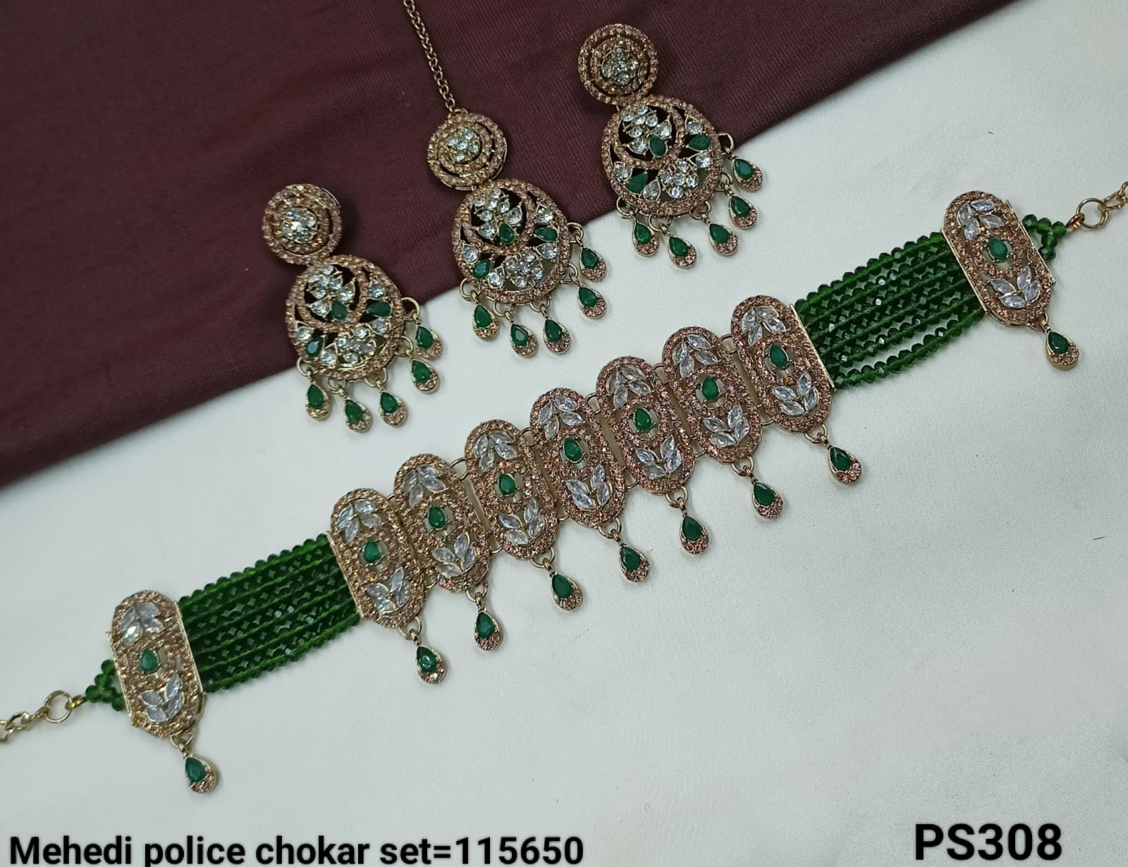 Elegant Mehedi Police Choker Set with Detailed Pendant and Matching Earrings