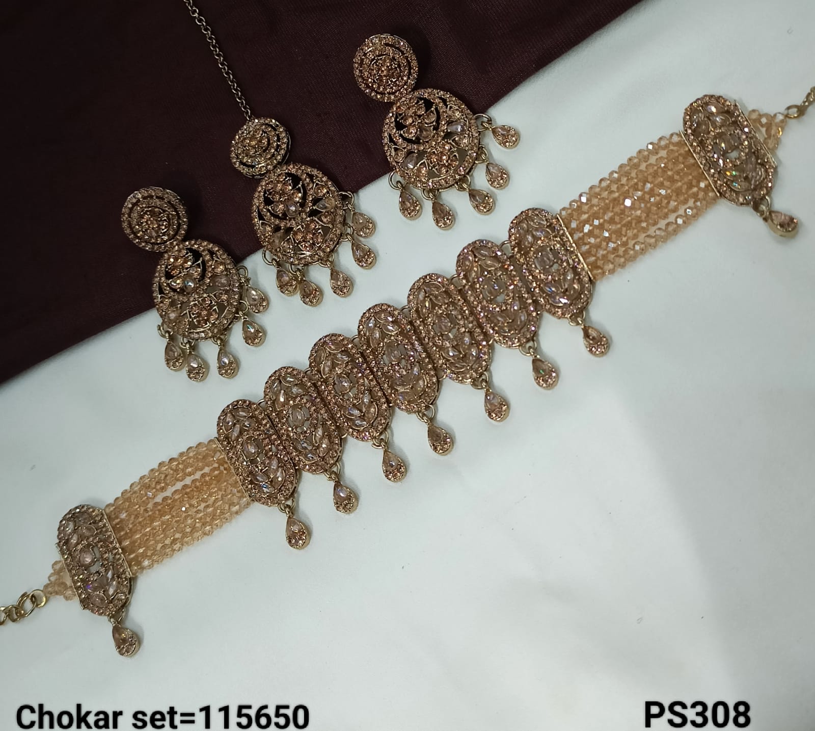 This exquisite Mehedi Police Choker Set features intricate craftsmanship with detailed pendants and matching earrings. Designed to complement traditional and festive attire, this set adds a touch of elegance and sophistication to your look. Perfect for weddings, special occasions, or cultural celebrations.