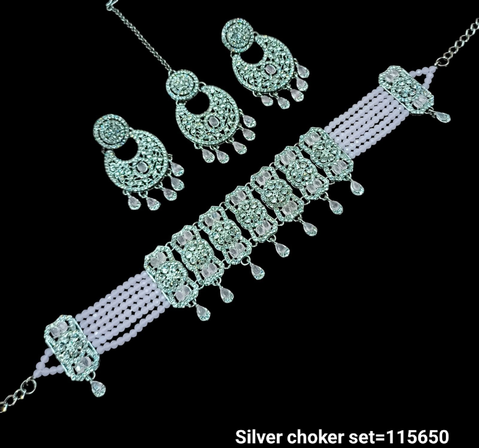 Elegant Silver Choker Set with Intricate Detailing and Matching Earrings