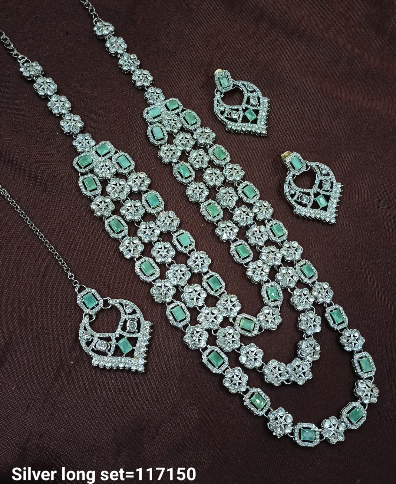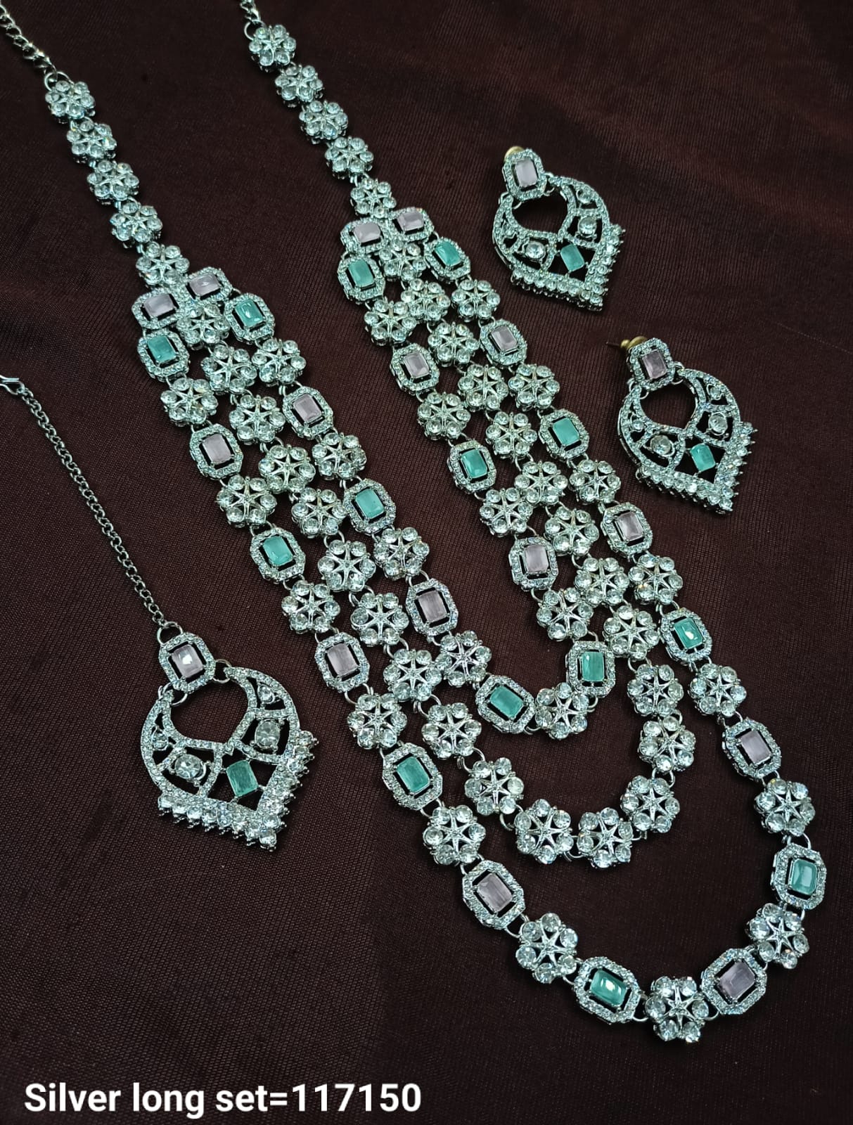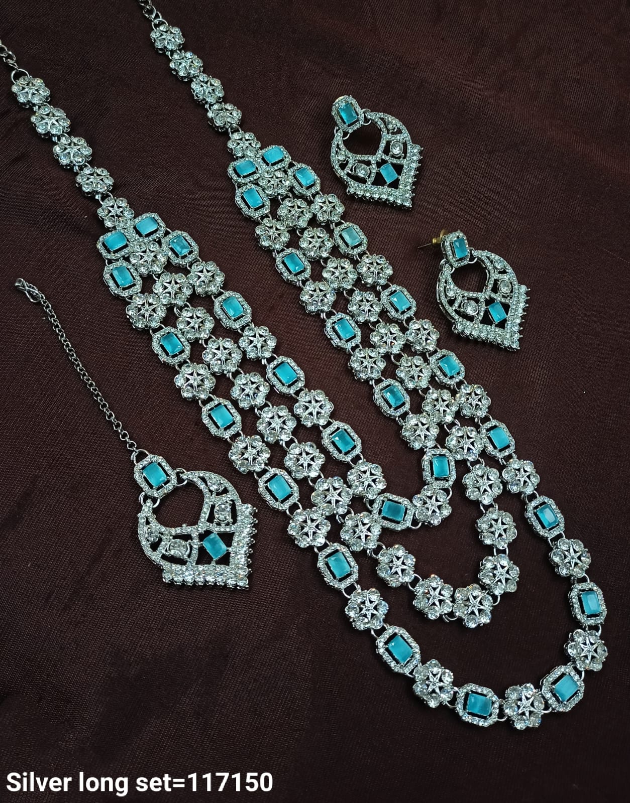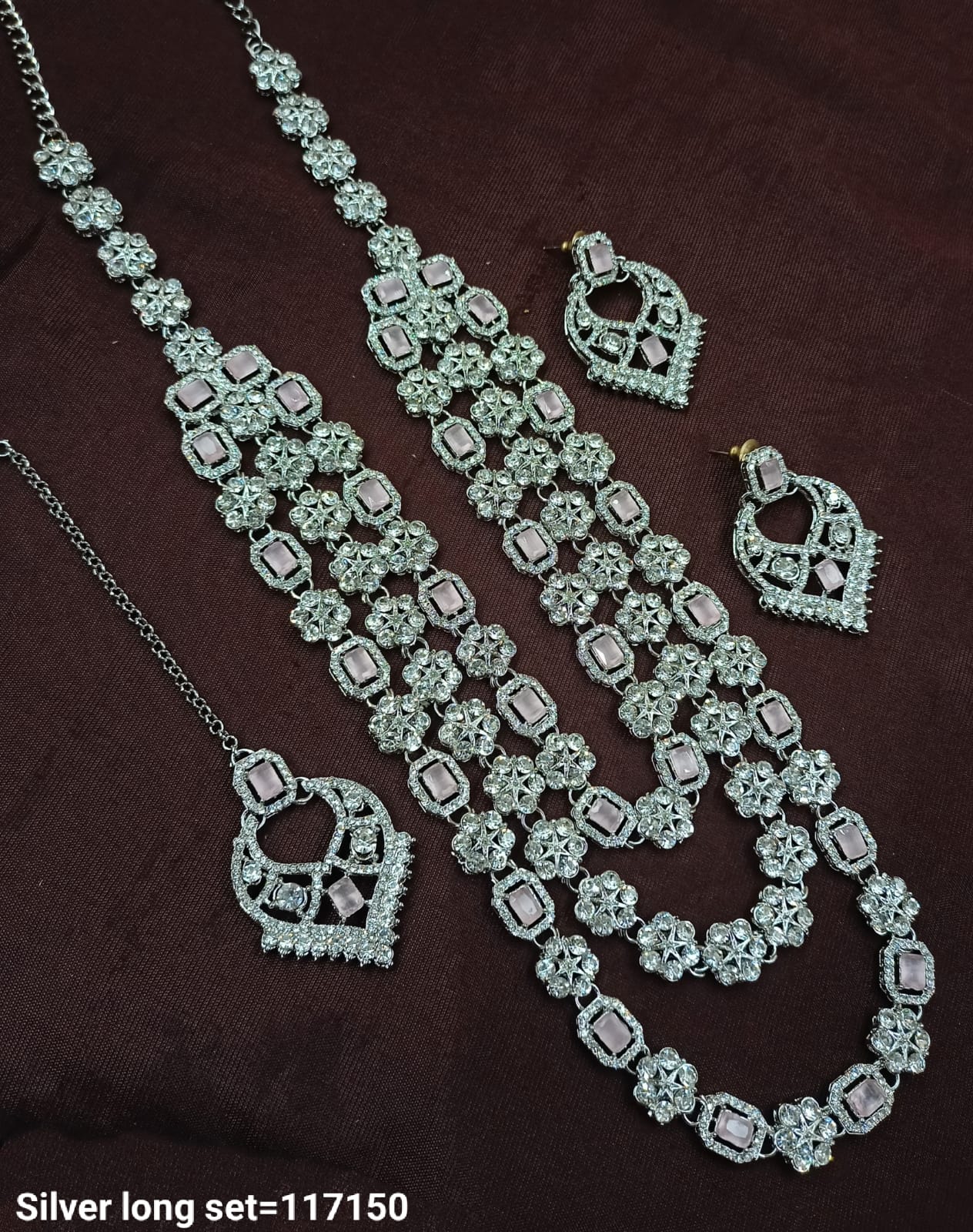Elevate your style with this exquisite three-layer long necklace set, expertly crafted with a silver-plated finish for a sophisticated and elegant look.