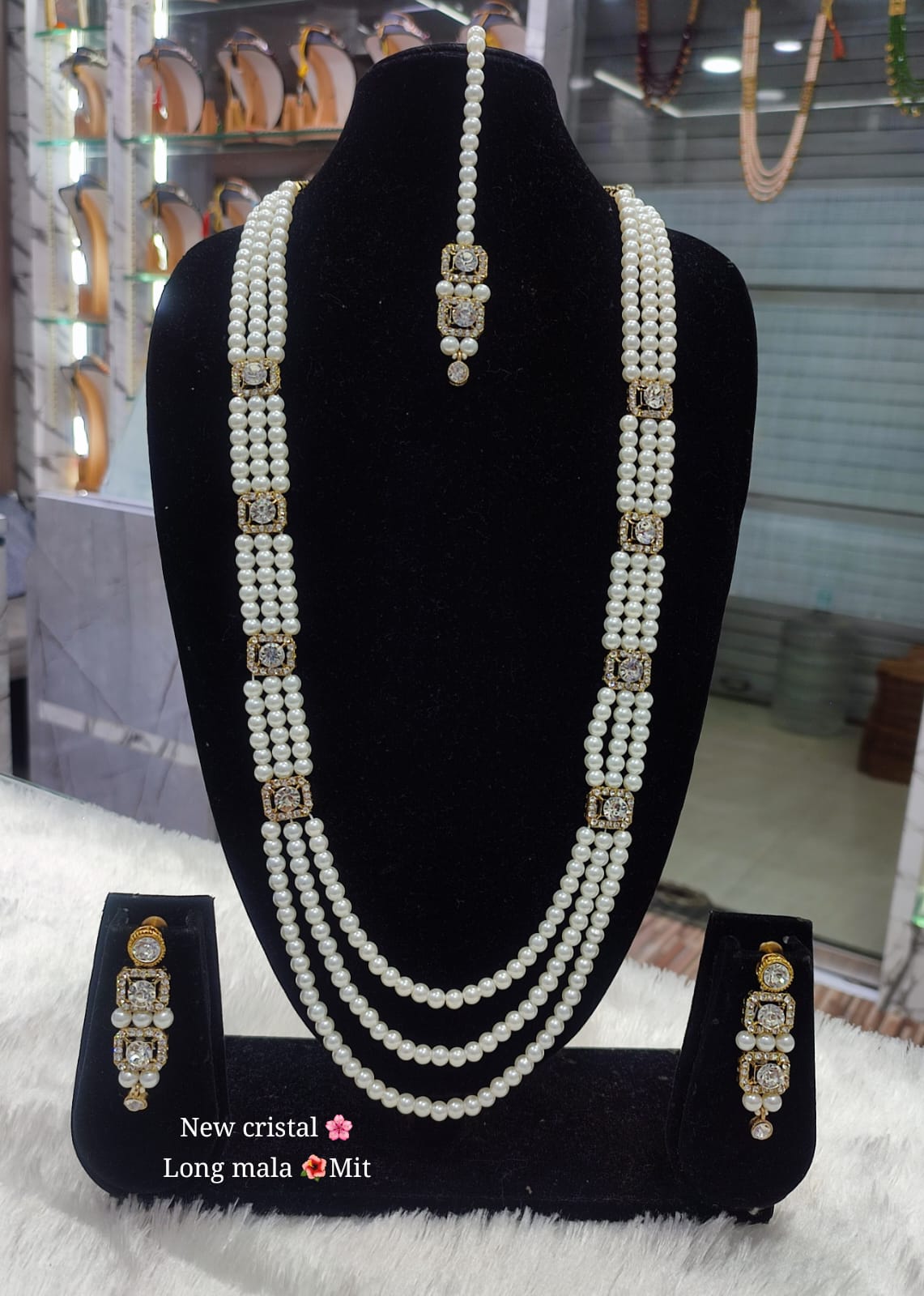 Fashion Gold Plated Long Pearl Mala Jewellery Set