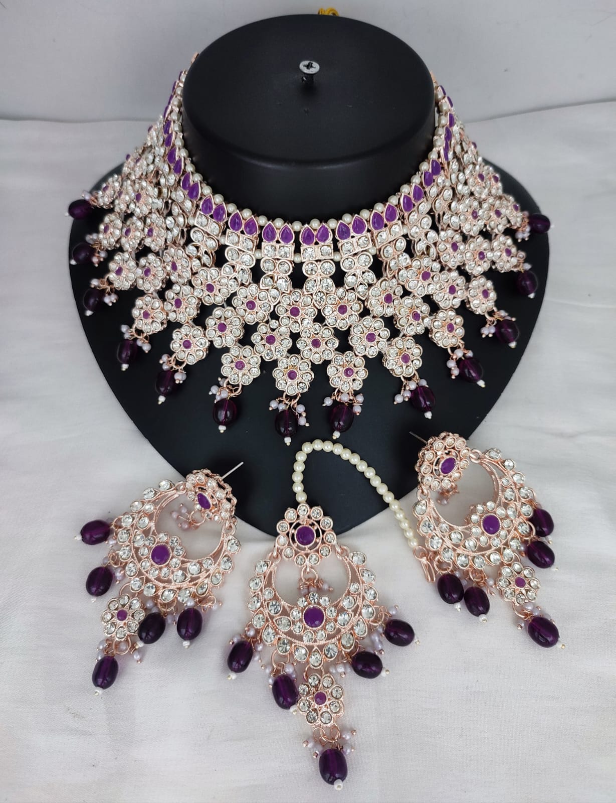 Fashion Rose Gold Plated Choker Jewellery Set