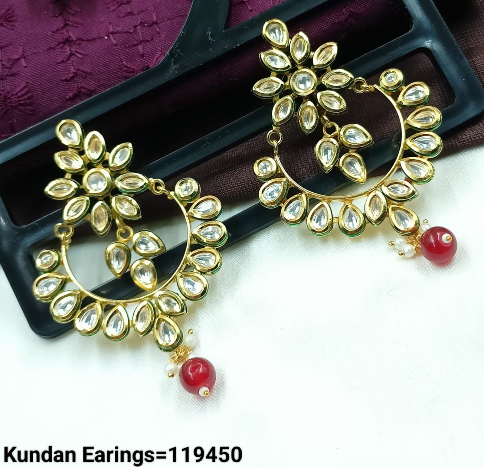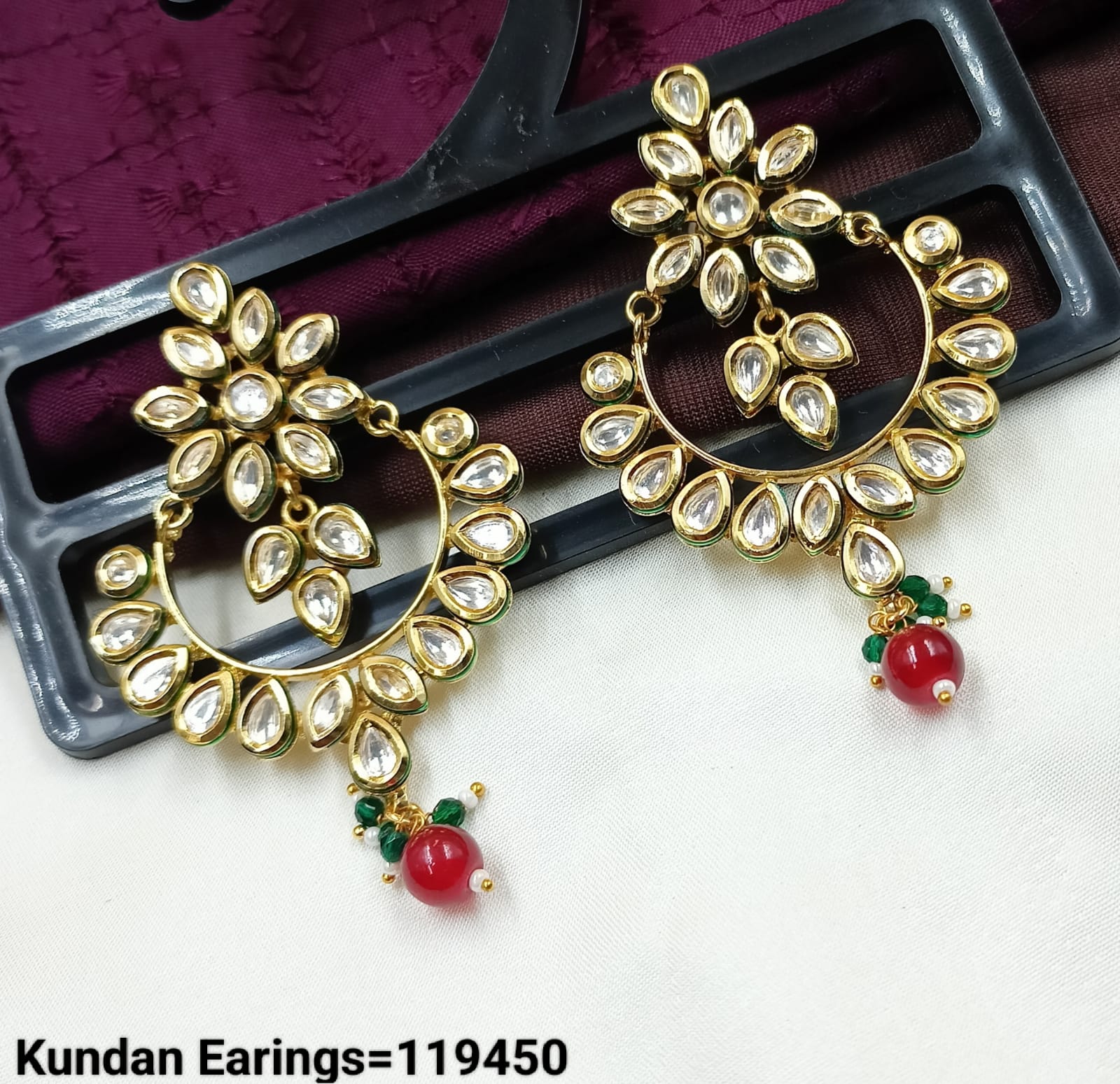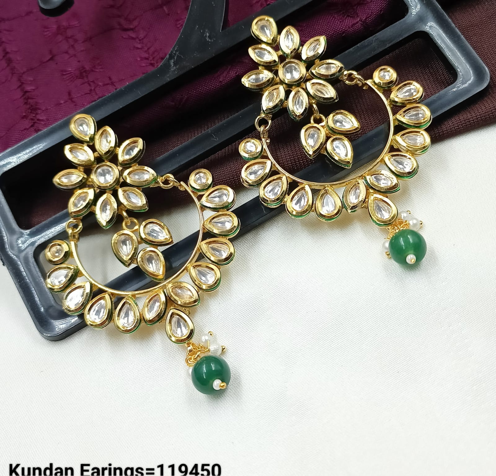 Add a touch of traditional elegance to your ensemble with these exquisite Kundan hoop earrings. Featuring a floral-inspired design adorned with sparkling Kundan stones, these earrings are beautifully accented with a decorative bead drop. Perfect for weddings, festive occasions, or cultural celebrations, they offer a timeless charm that enhances any ethnic outfit.