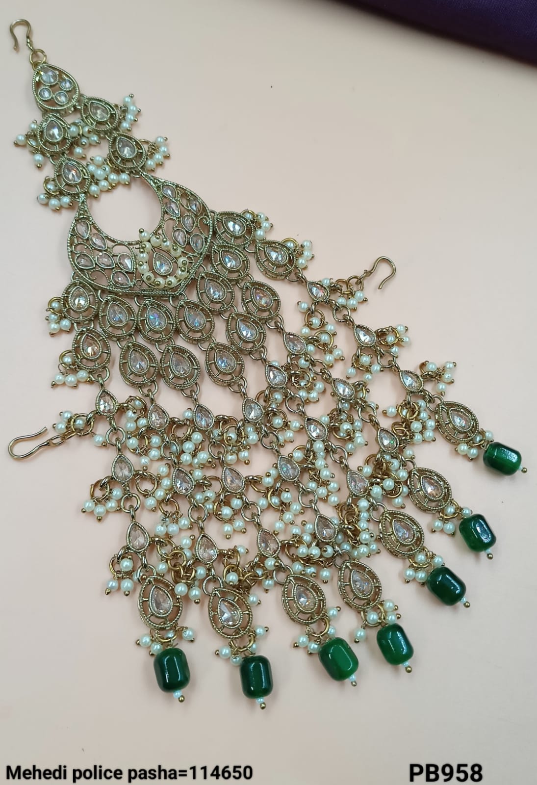 Upgrade your hair game with our Fashionable Mahendi Plating Hair Accessories. These stylish pieces will add a touch of glamour to any hairstyle. With its unique design and expert craftsmanship, you'll enjoy a flawless look every time. Elevate your style with ease and make a statement with these trendy hair accessories.
