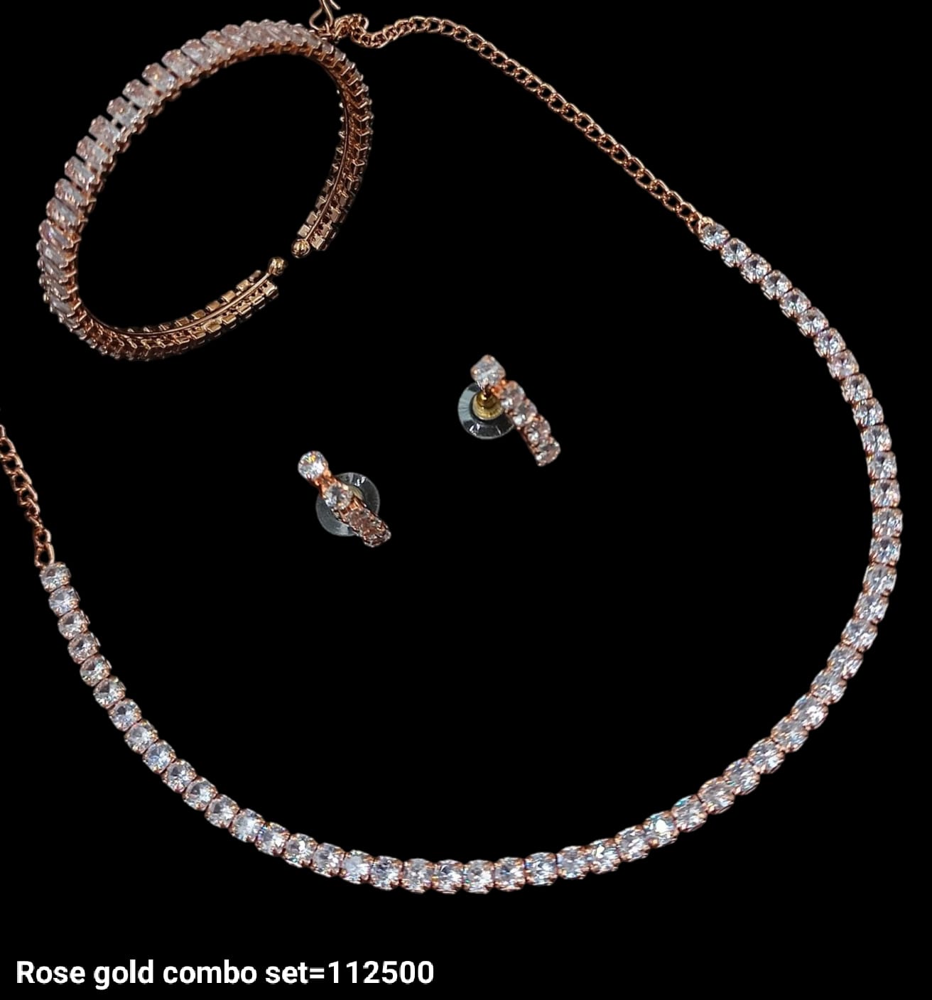 This elegant choker necklace set features a sophisticated blend of rose gold and silver plating, designed to enhance your style with a refined and fashionable touch.