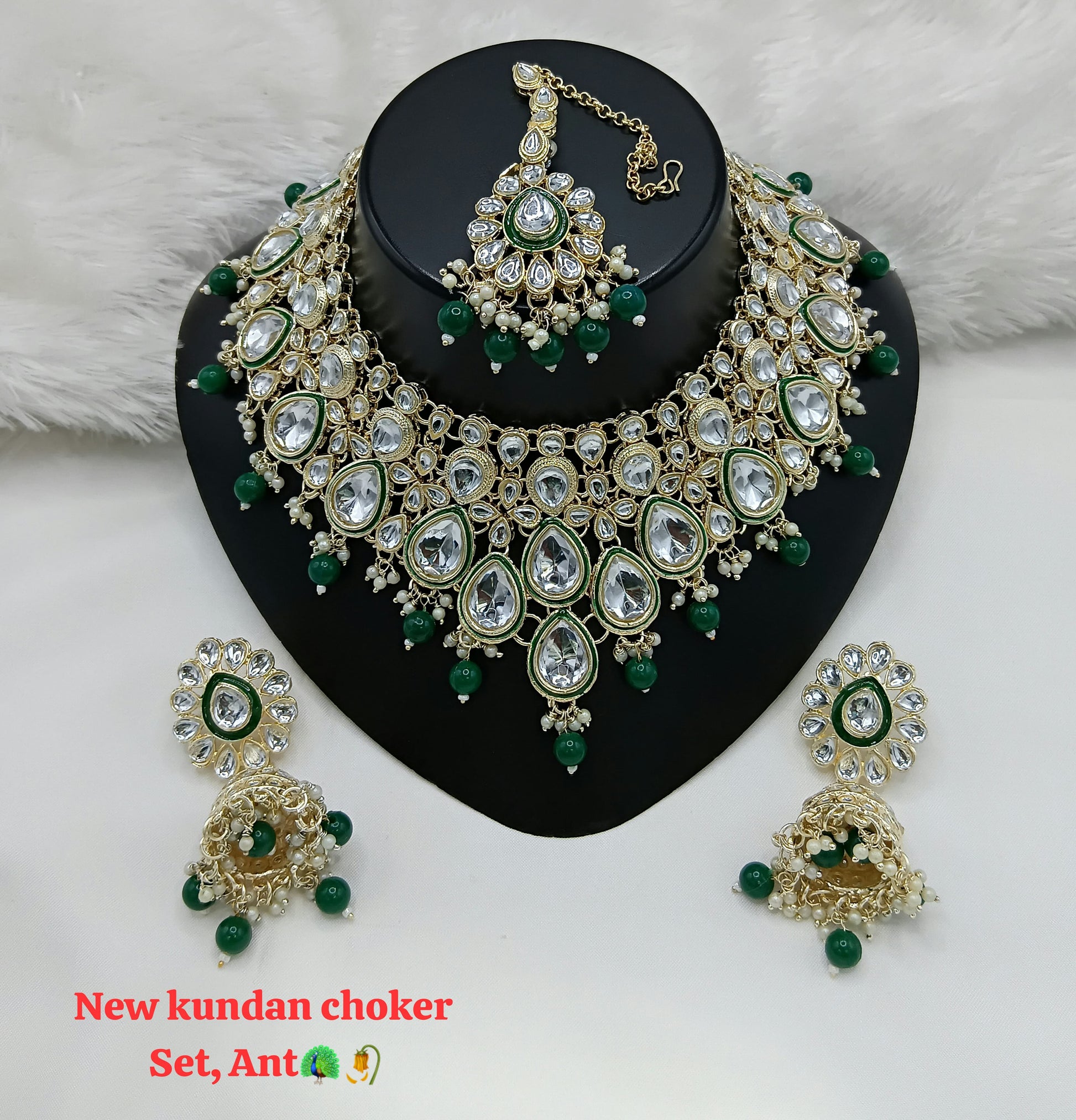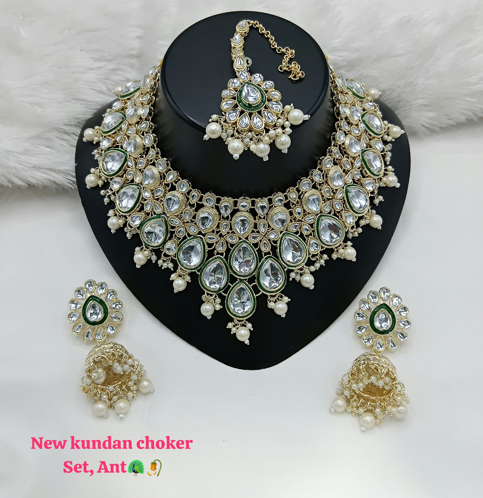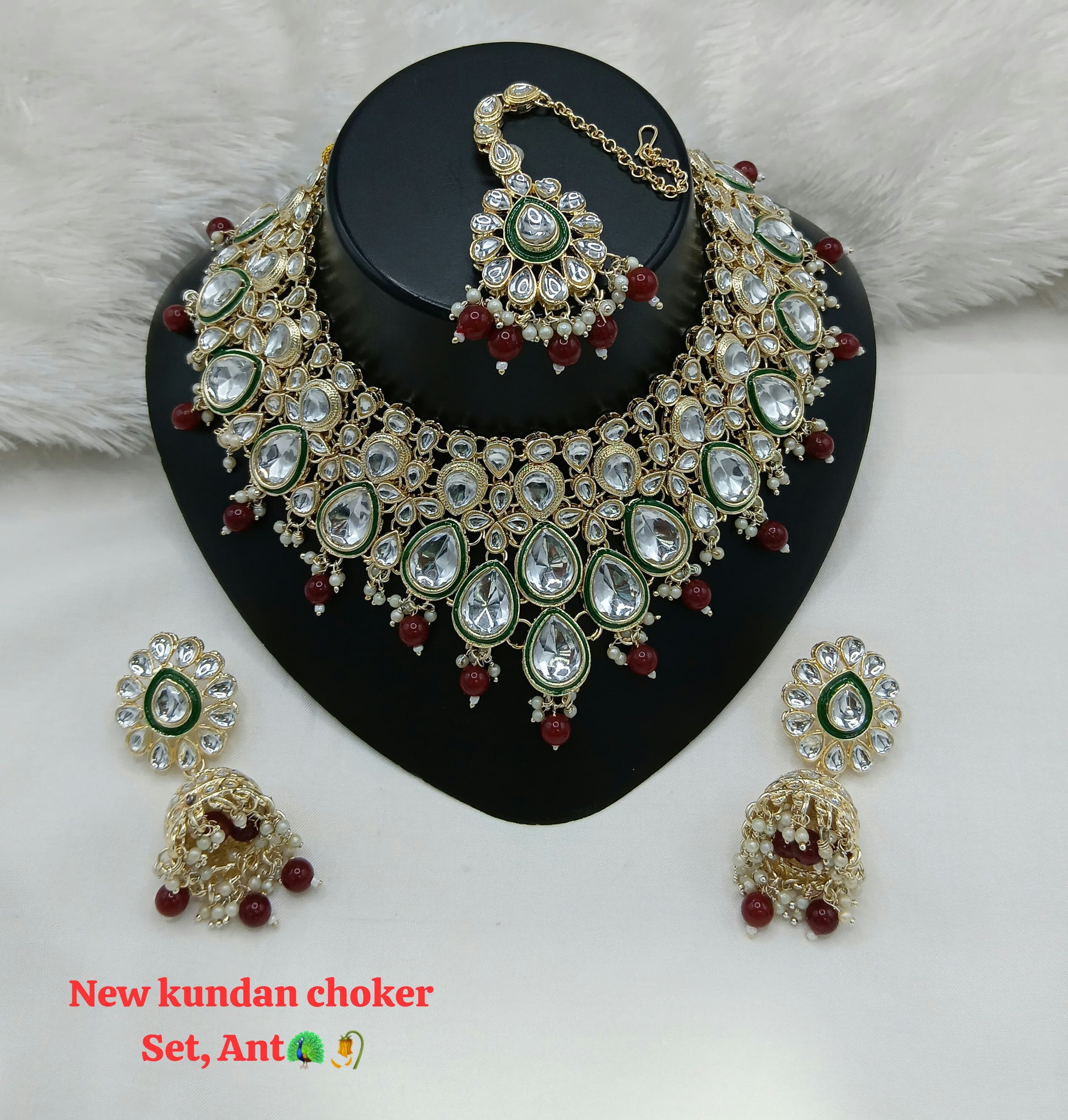 Set Includes: 1 choker necklace, 1 pair of earrings, 1 maang tikka
