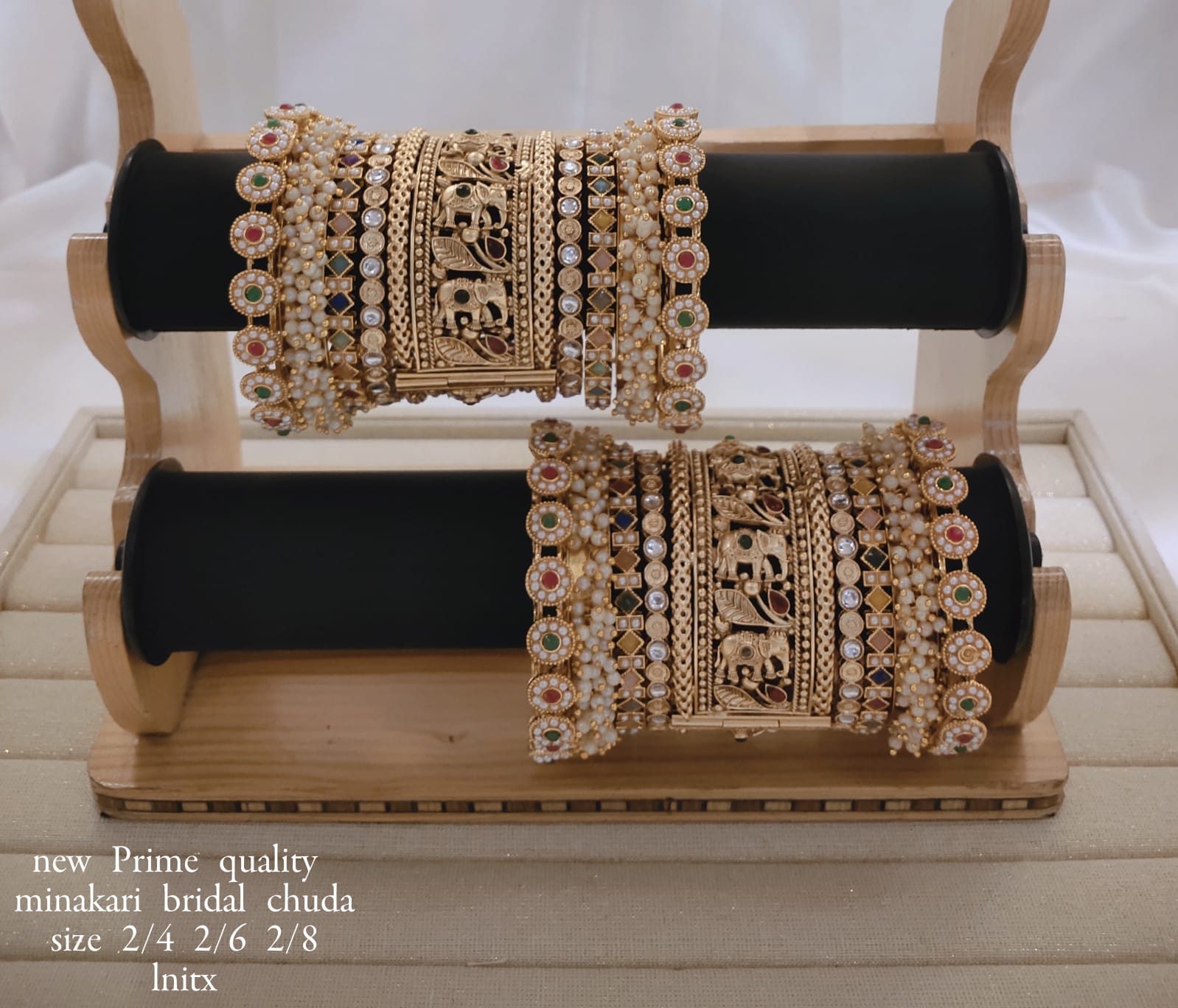 This set features bangles crafted from copper and finished with a refined gold plating, combining durability with elegant design.