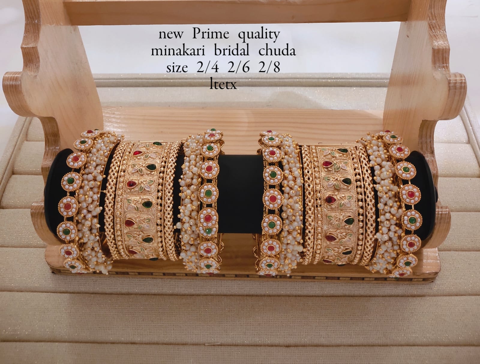 Elevate your accessory collection with this expertly crafted Gold Plated Copper Bangle Set. Featuring delicate pearls, intricately designed leaves, and floral motifs, each bangle combines timeless elegance with artisanal detail.
