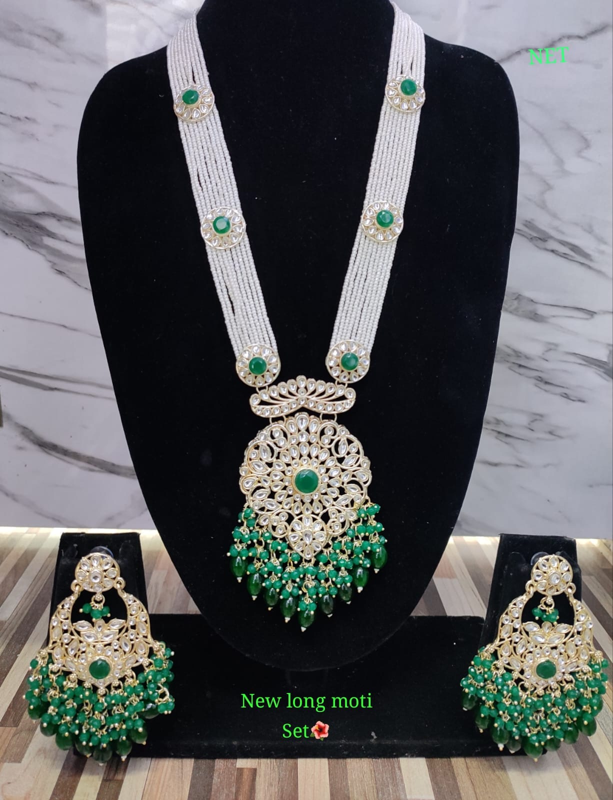Gold Plated CZ Stone Long Necklace Jewellery Set