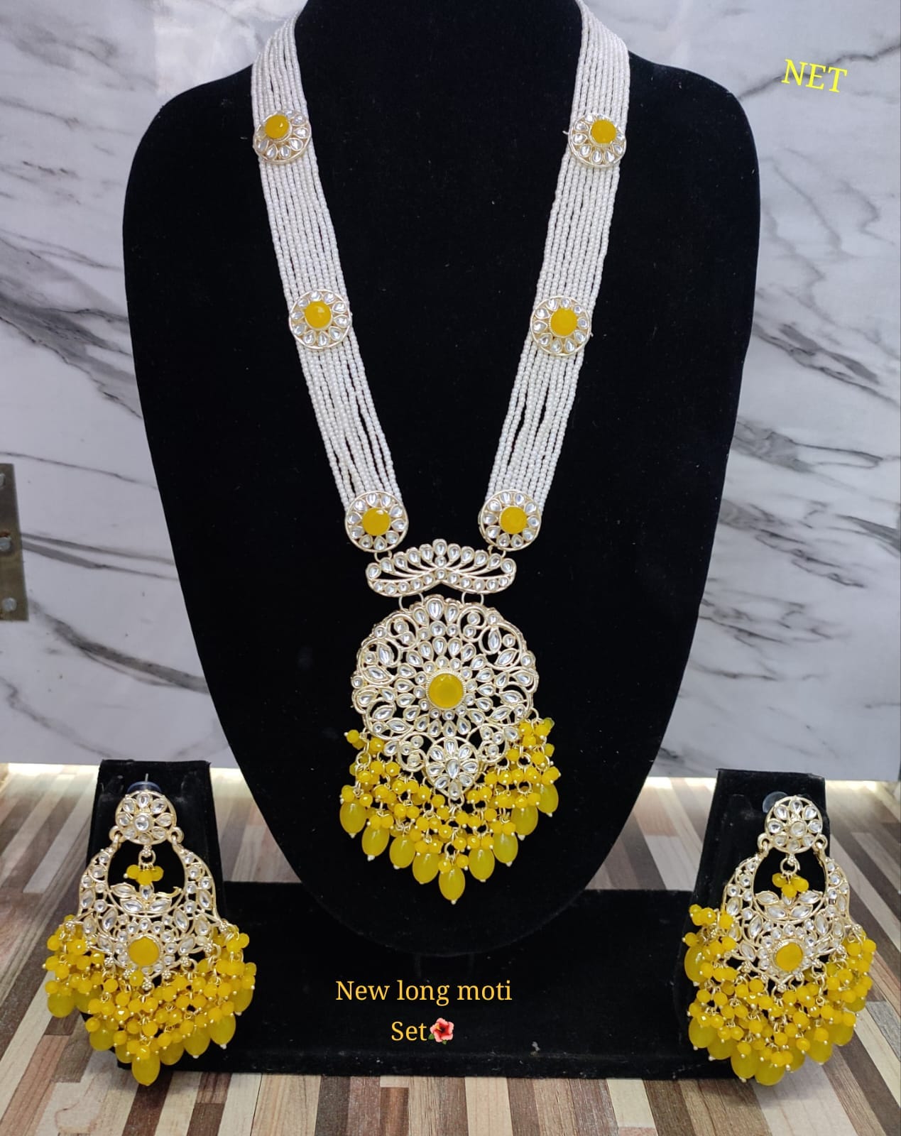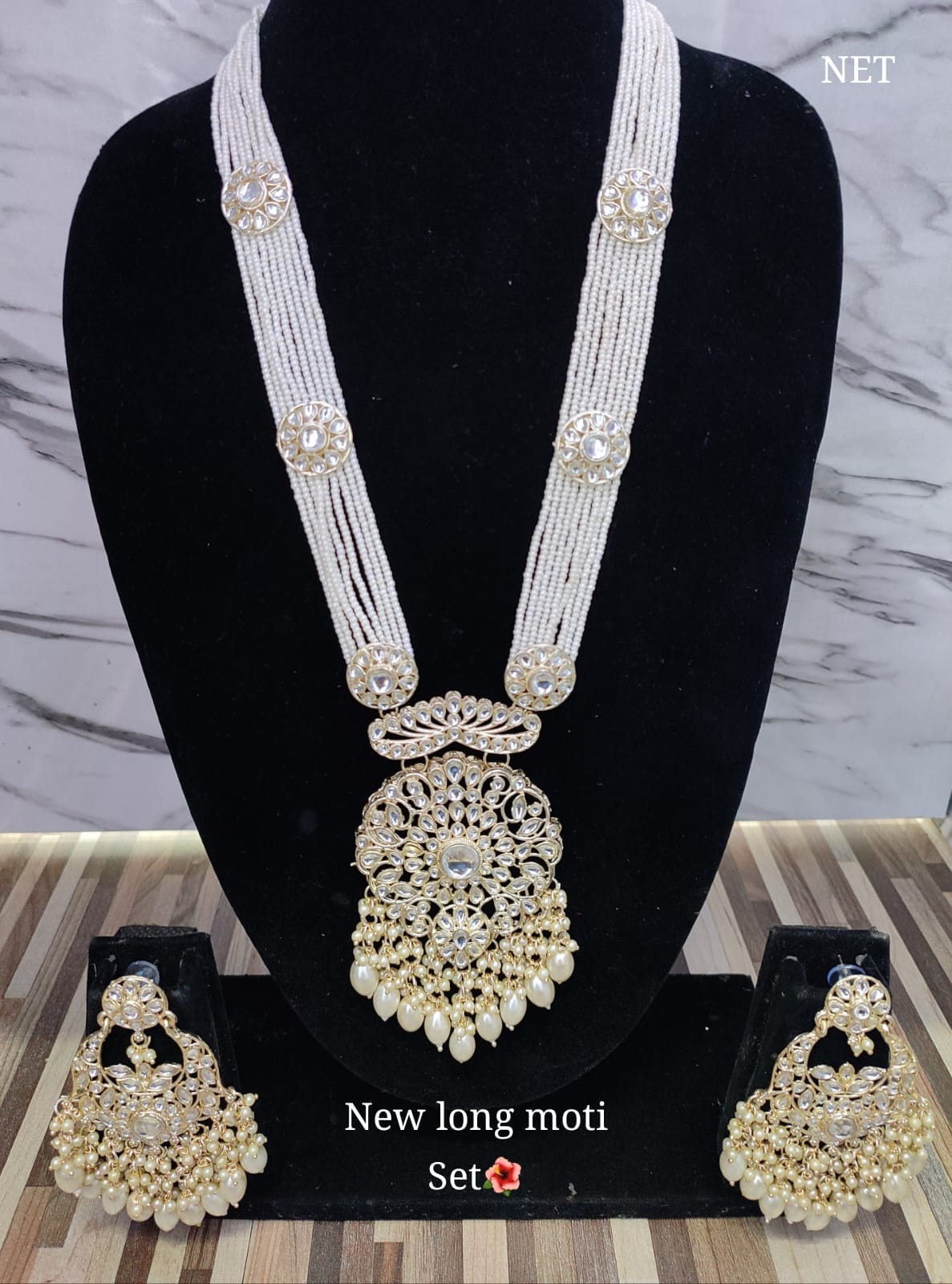 This elegant gold plated CZ stone long necklace set is a must-have for any formal occasion. The intricate design and high-quality materials will add a touch of luxury to your outfit. The set includes a necklace and matching earrings, making it a versatile and essential addition to your jewelry collection.
