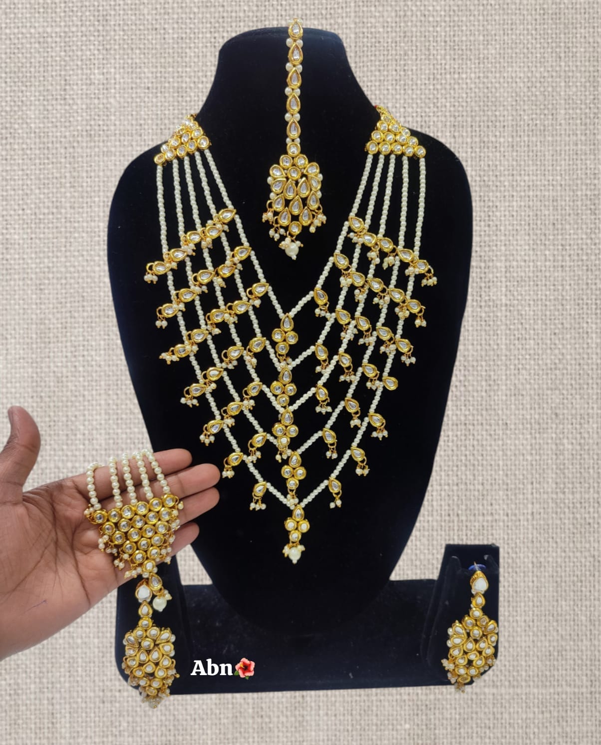 Gold Plated Kundan Pearl Jewellery Set