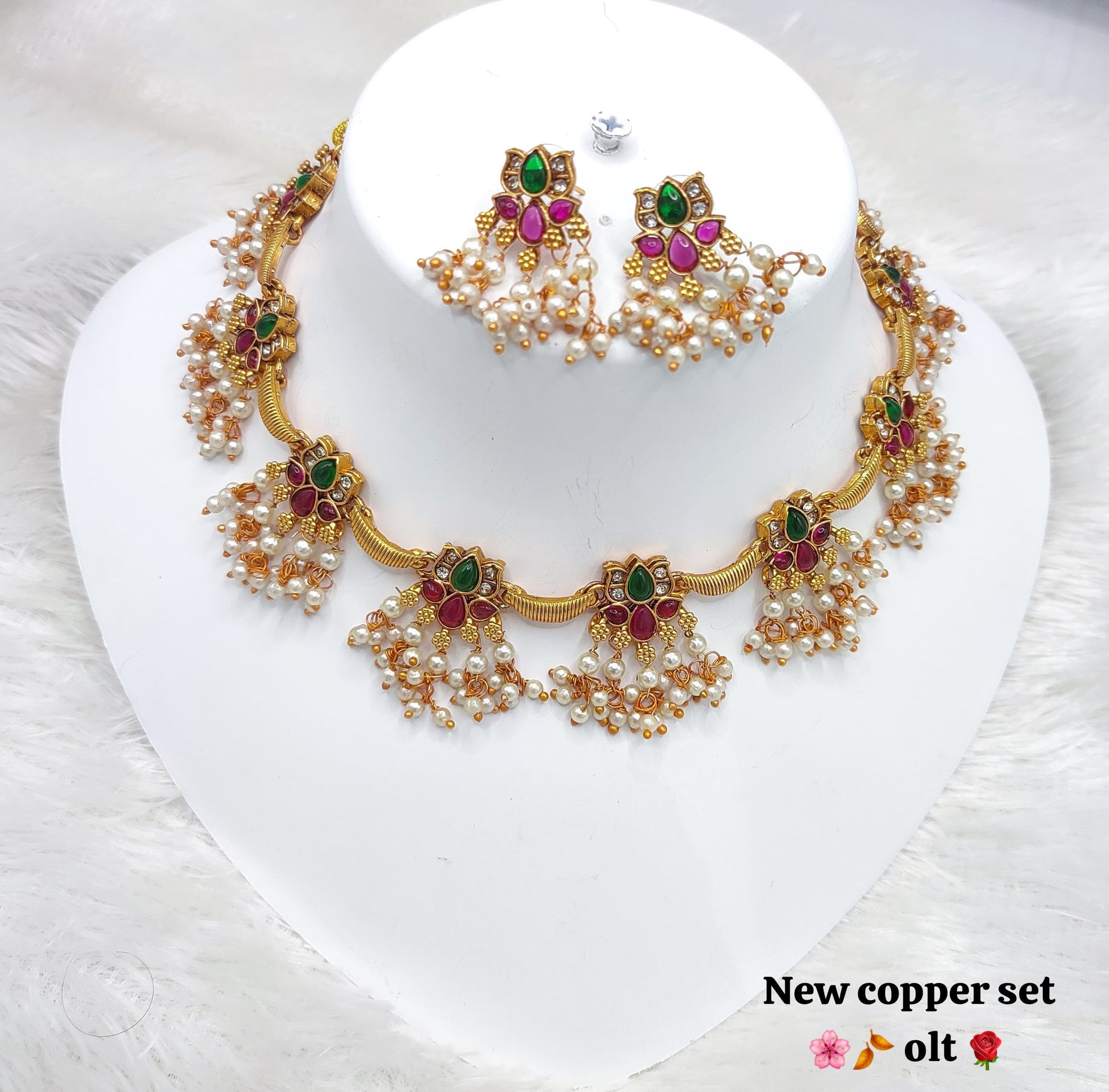 Elevate your style with our stunning Gold Plated Kundan Stone Temple Jewellery Set. Made from high-quality materials, our set features intricate Kundan stone designs that add a touch of elegance and charm to your look. Perfect for special occasions or as a statement piece, this set is a must-have for any jewellery lover.