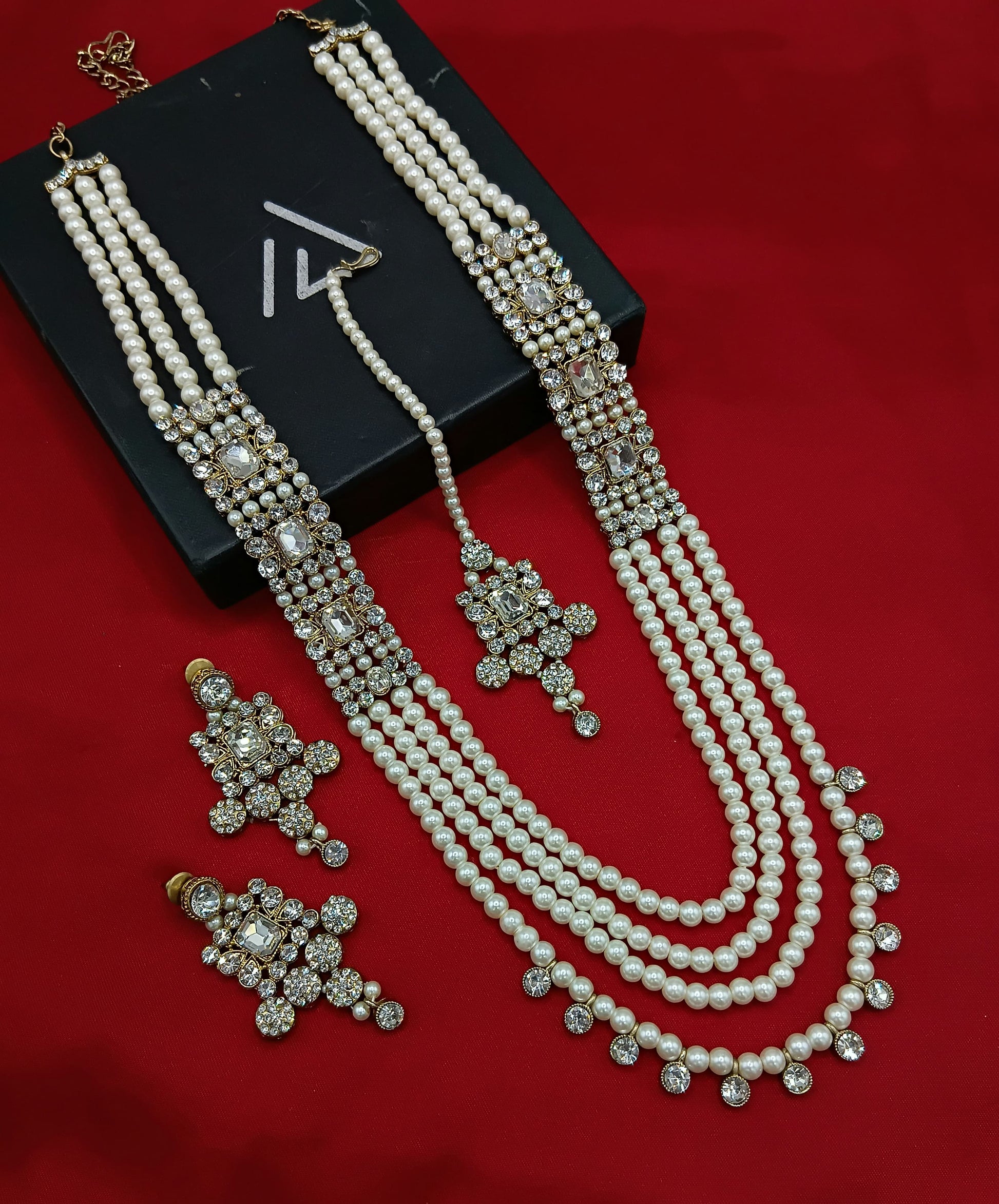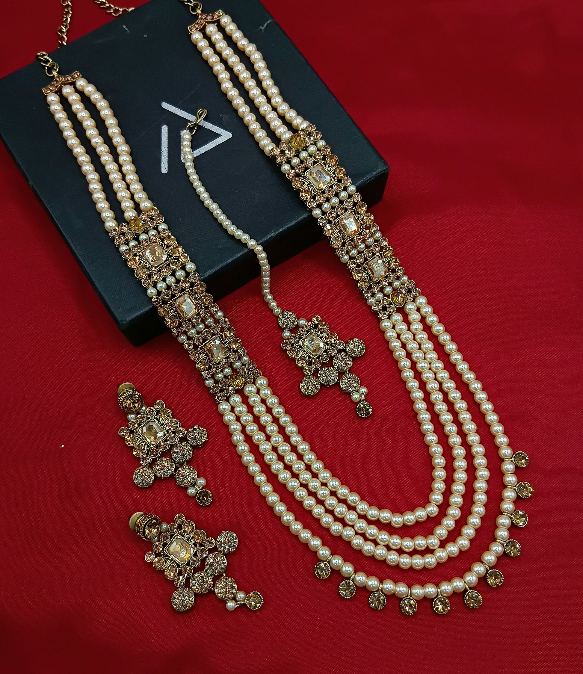 Elevated with an antique gold-plated finish, this long Jewellery set offers a refined and timeless accessory choice.