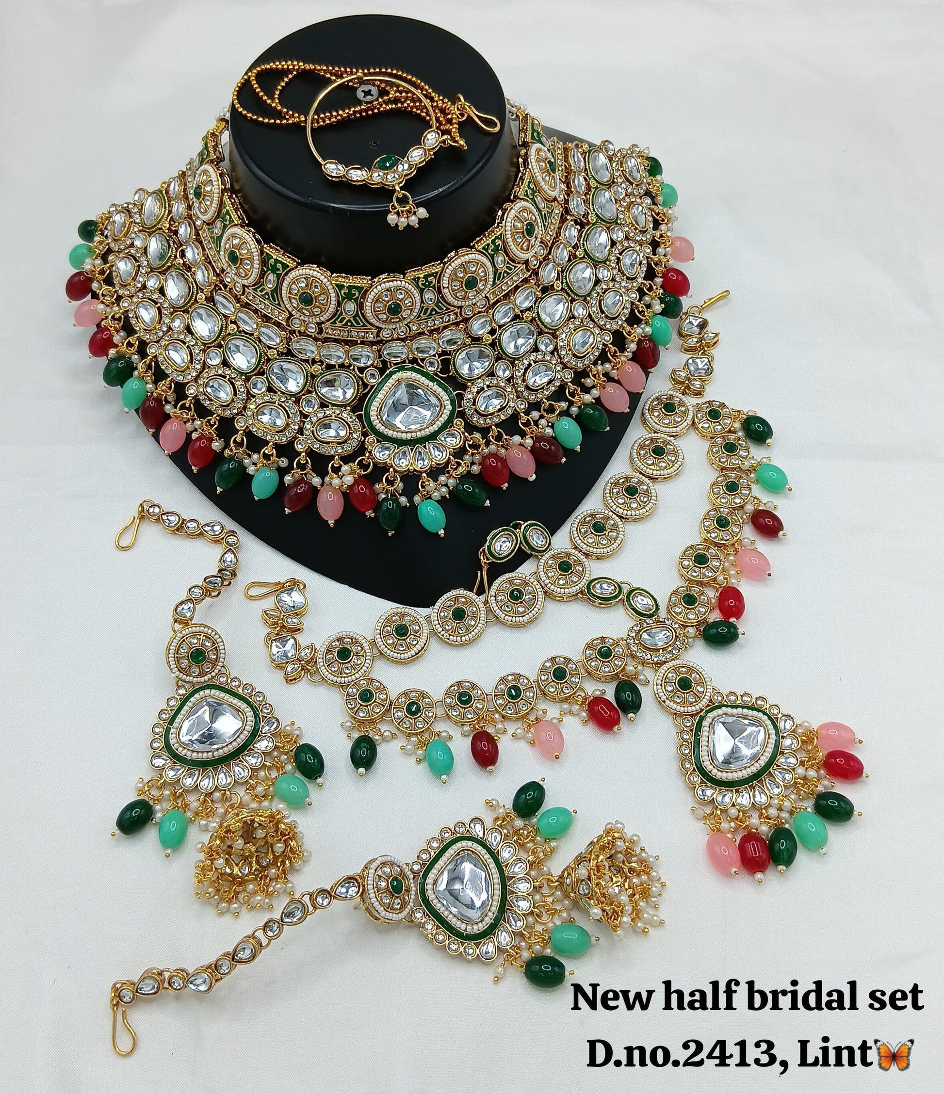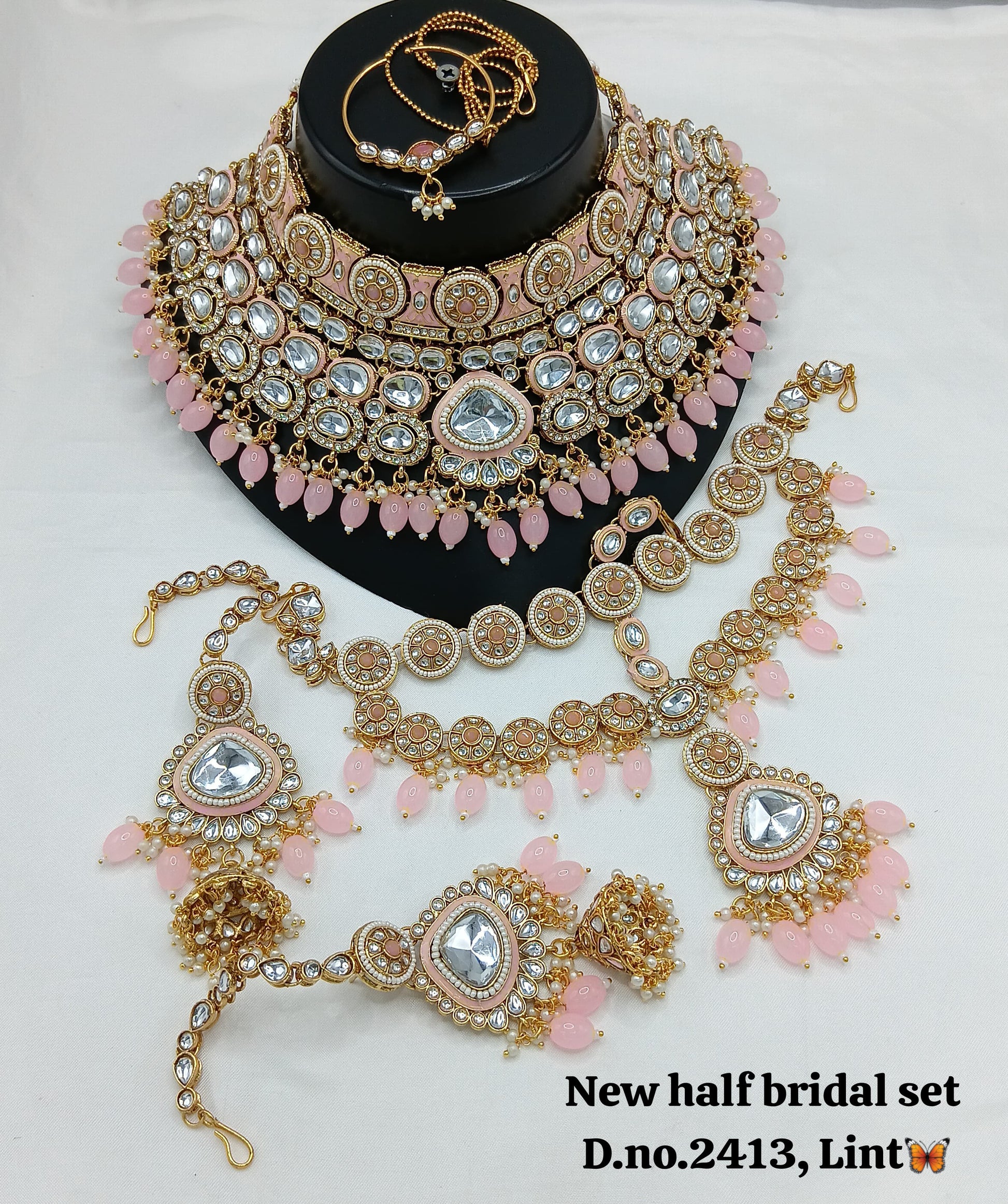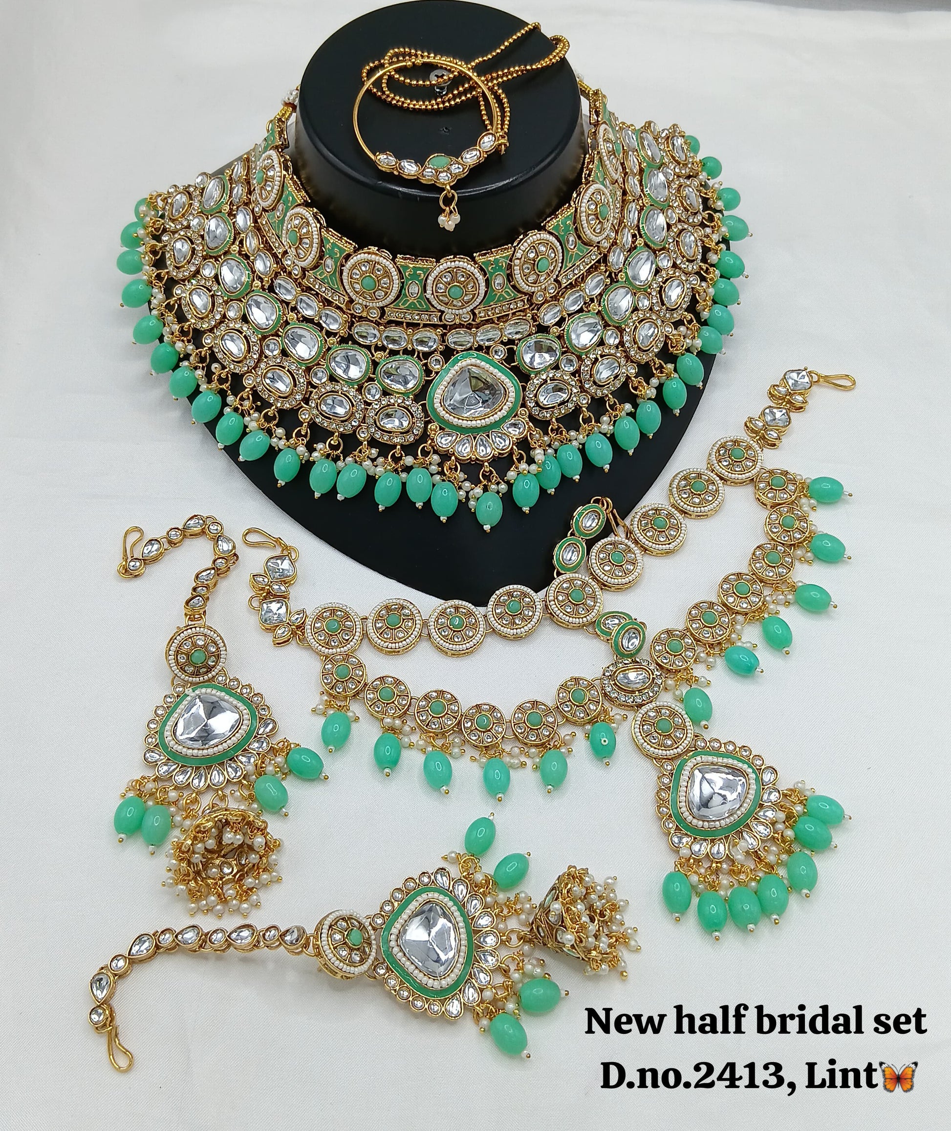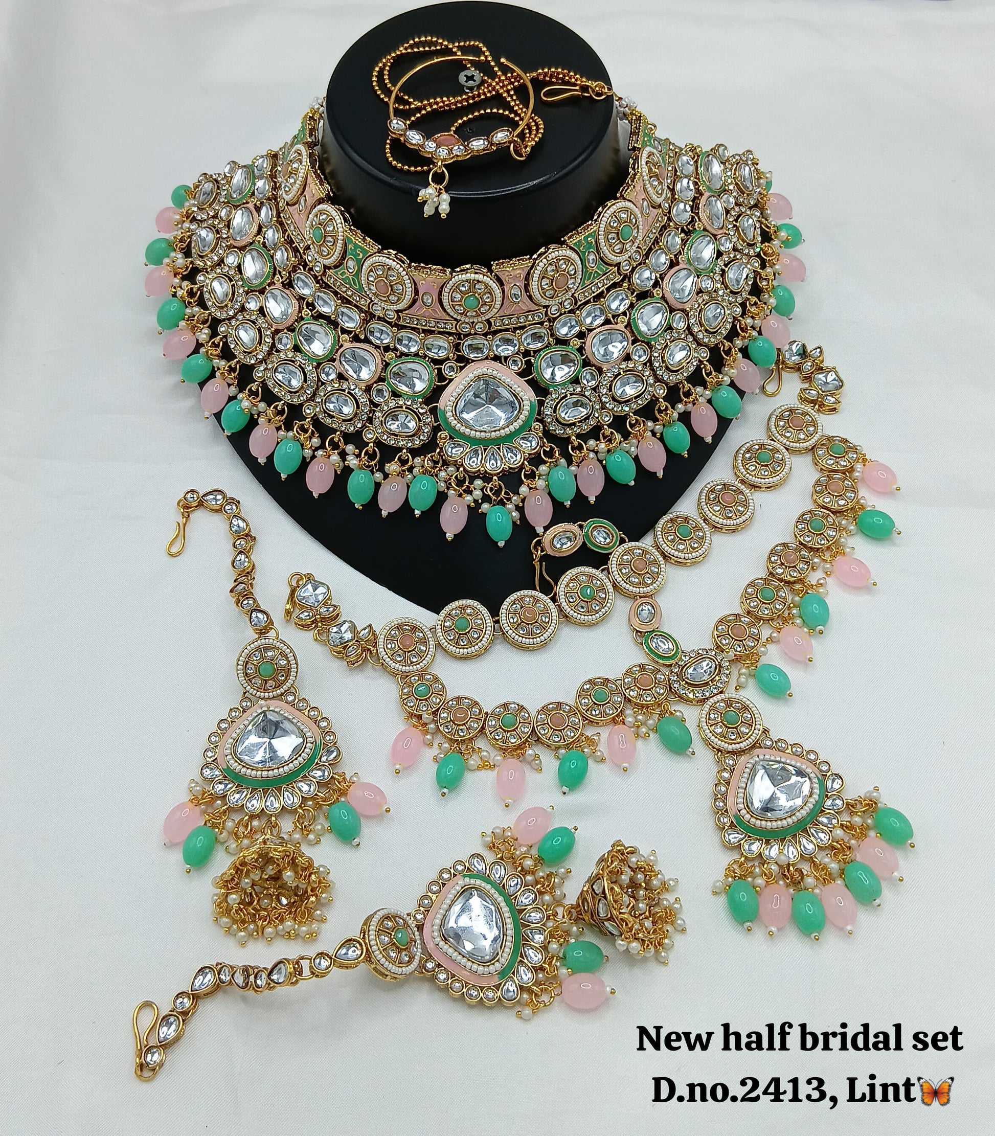 This half bridal set showcases detailed craftsmanship, elegantly coated with a gold plating to provide a refined and classic look.