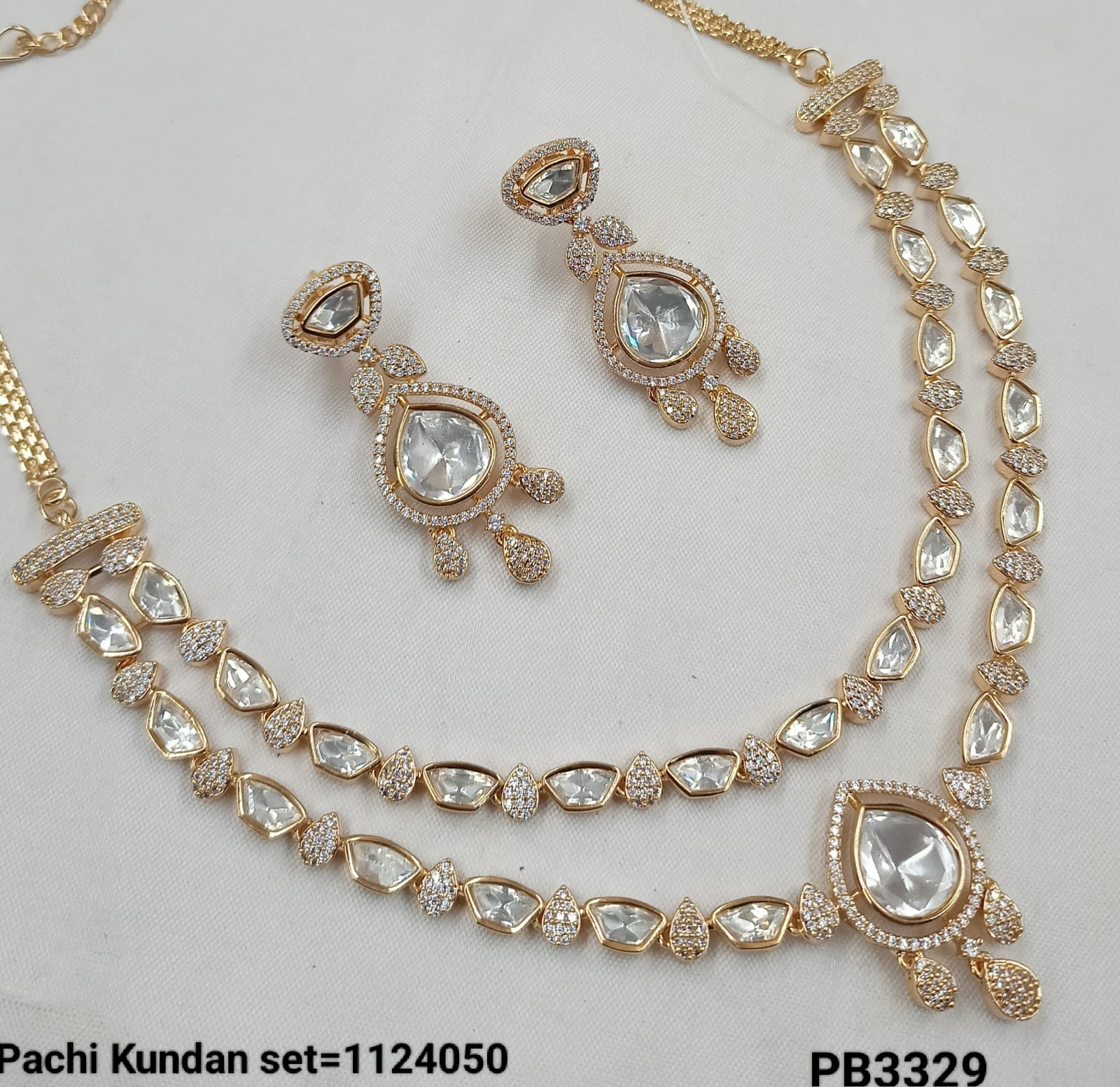 Elevate your bridal or festive look with this Elegant Kundan Necklace Set. Featuring exquisite craftsmanship, this set showcases sparkling kundan stones delicately arranged in a traditional yet contemporary design. The matching earrings complement the necklace perfectly, adding a touch of sophistication and glamour to your ensemble. Ideal for weddings, parties, and special occasions, this jewelry set will make you stand out with its timeless beauty and intricate detailing.