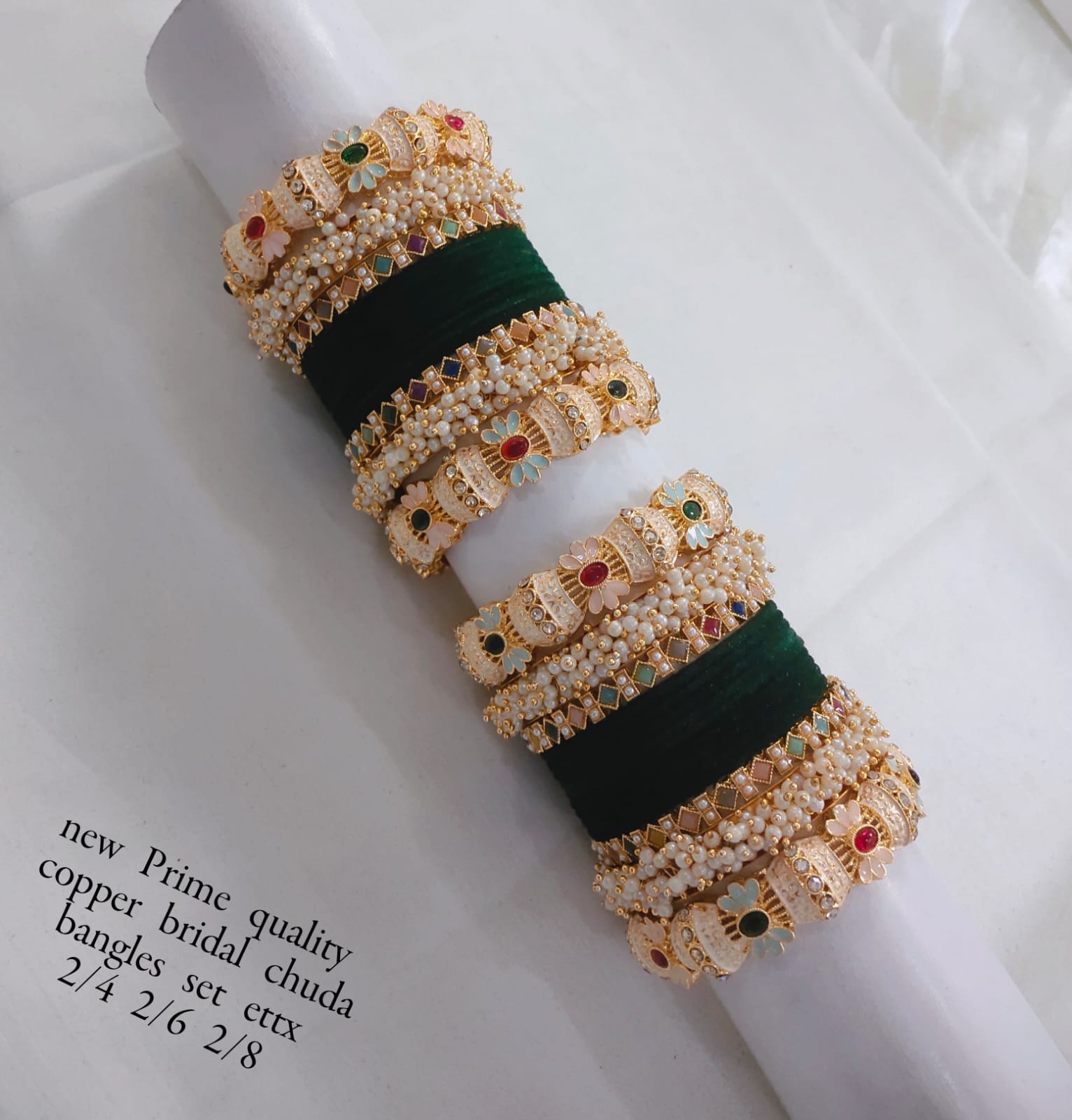 This Bridal Chuda Set features a luxurious gold-plated finish combined with rich velvet, designed to enhance traditional bridal elegance.