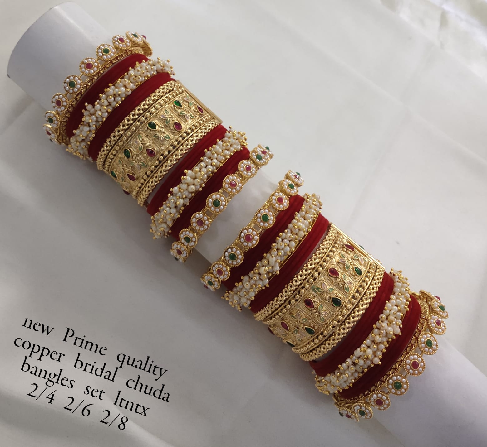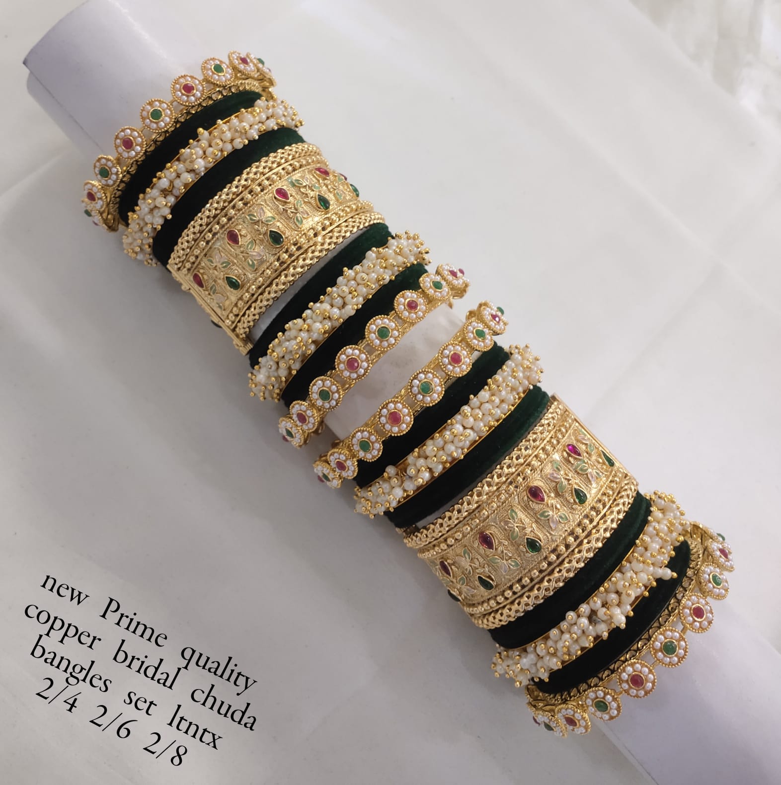 A velvet chuda set beautifully adorned with gold plating, showcasing expert craftsmanship and timeless elegance.