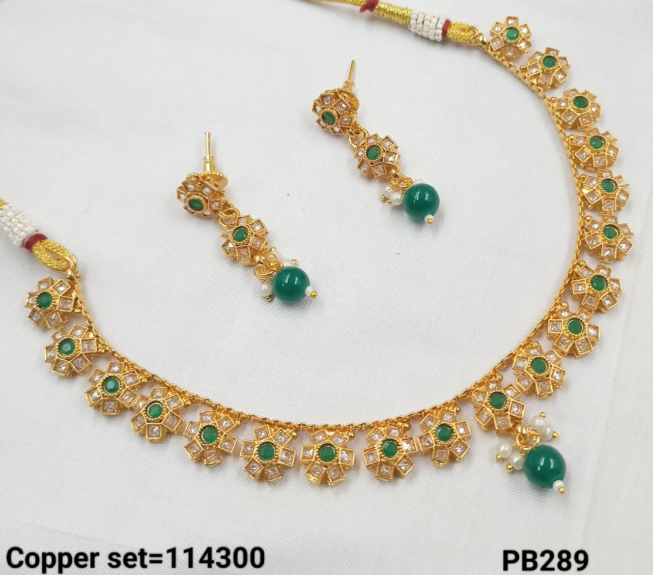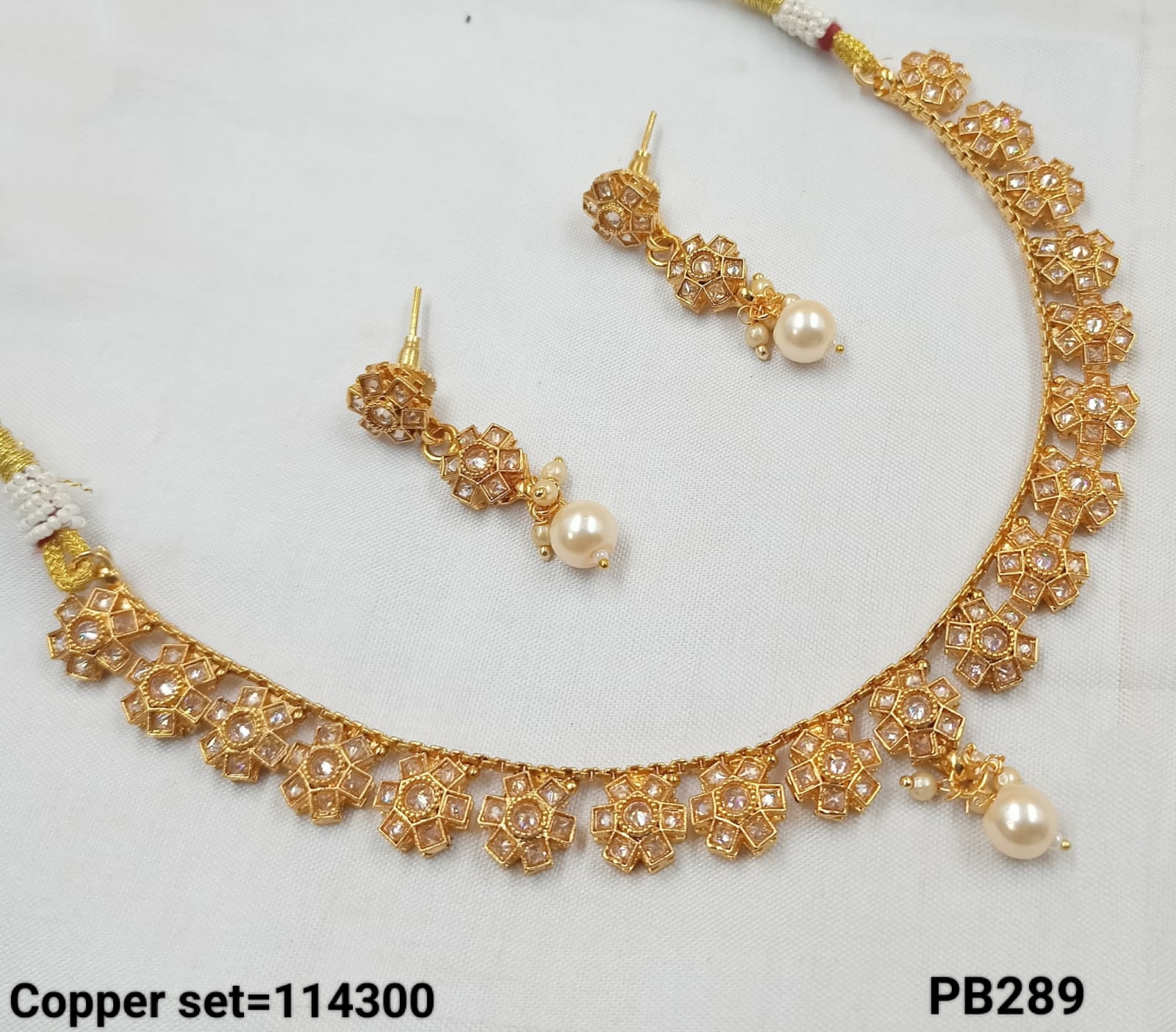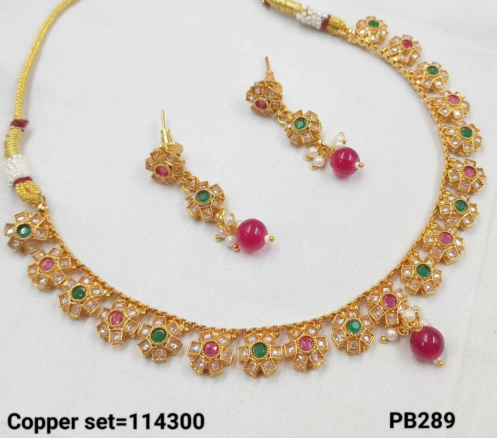 This elegant necklace set features a sophisticated gold-polished finish on finely crafted copper, combining style with durability for a timeless accessory.