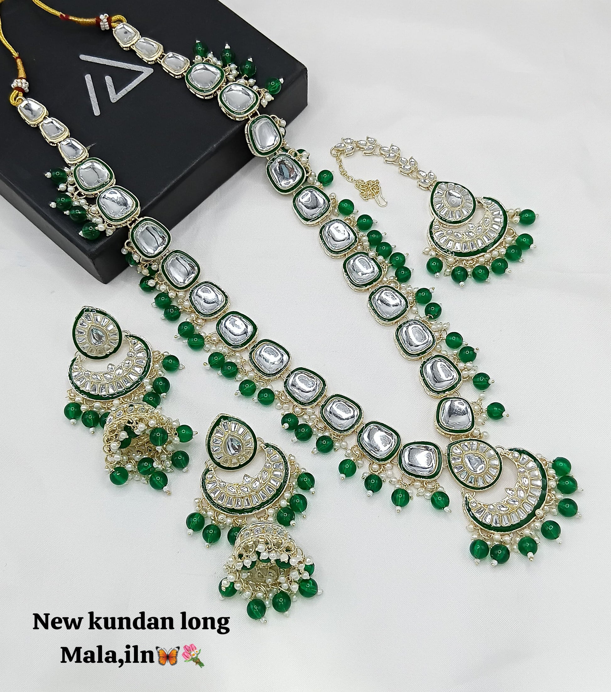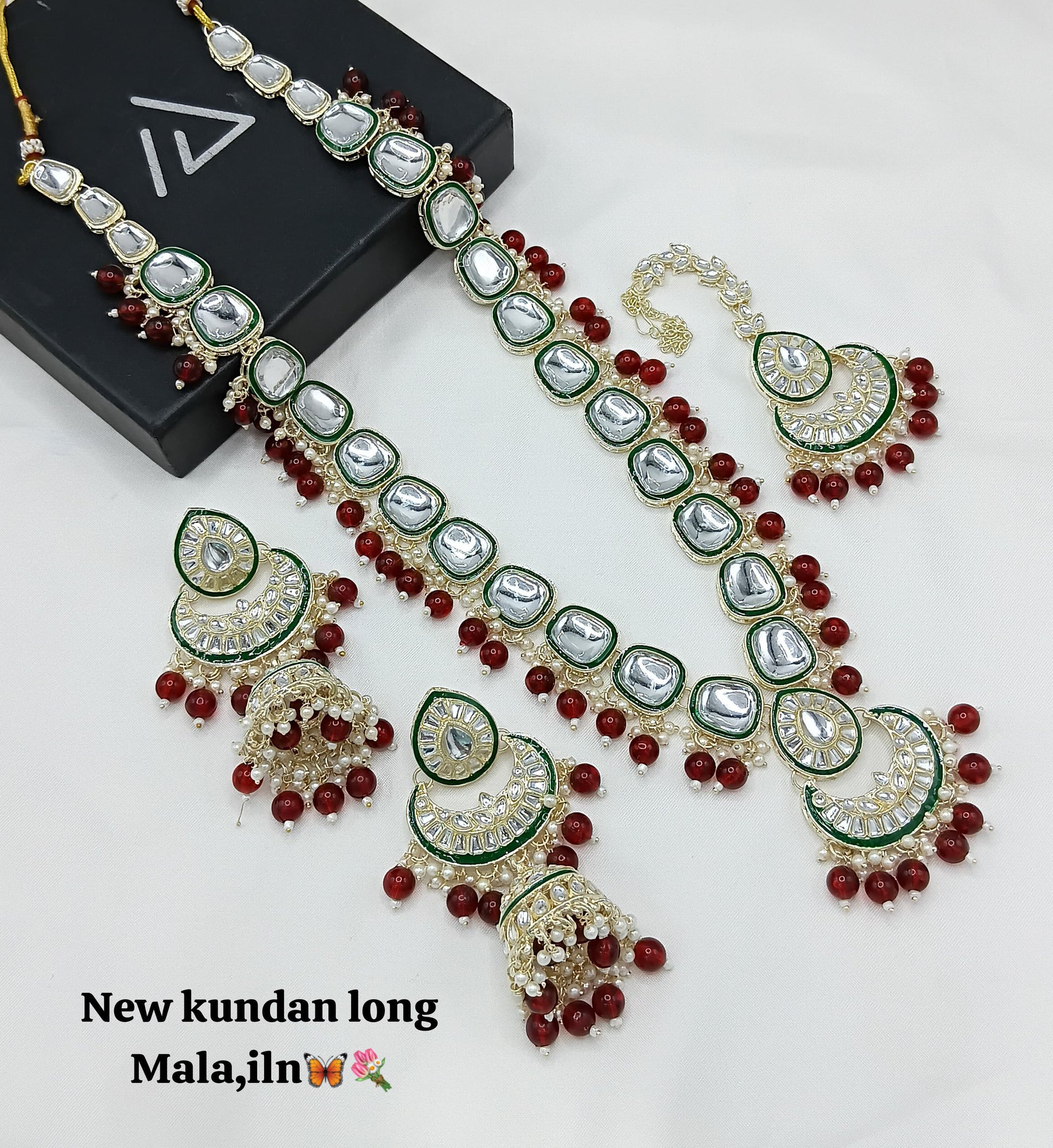 Discover the timeless beauty of this long Kundan jewellery set, expertly crafted and finished with a luxurious gold plating for a distinguished traditional look.