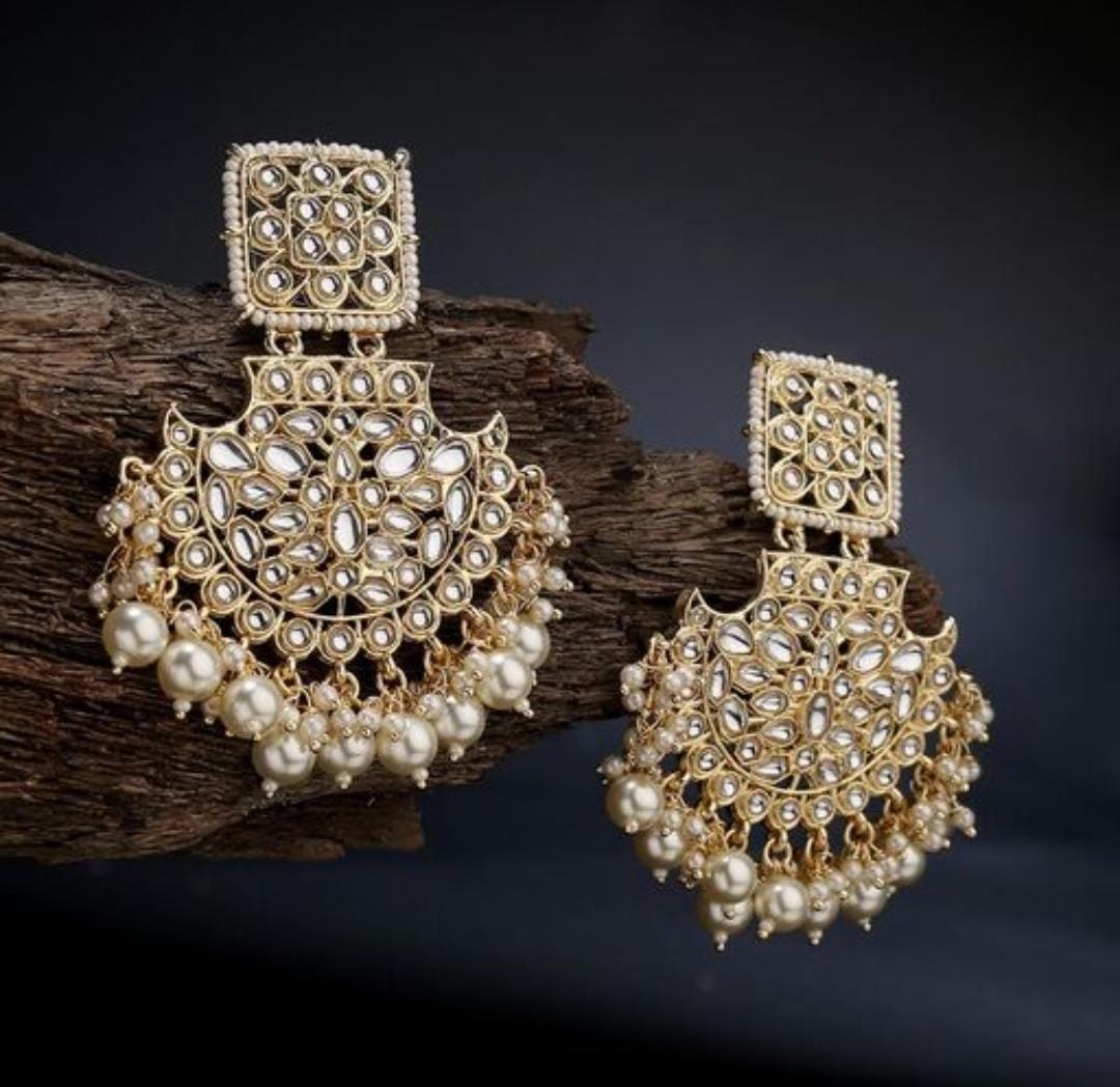 Turn heads on your special day with these statement bridal earrings, featuring intricate craftsmanship and adorned with lustrous pearl drops. Designed to blend elegance and tradition, these earrings are perfect for weddings, festive occasions, and cultural celebrations.