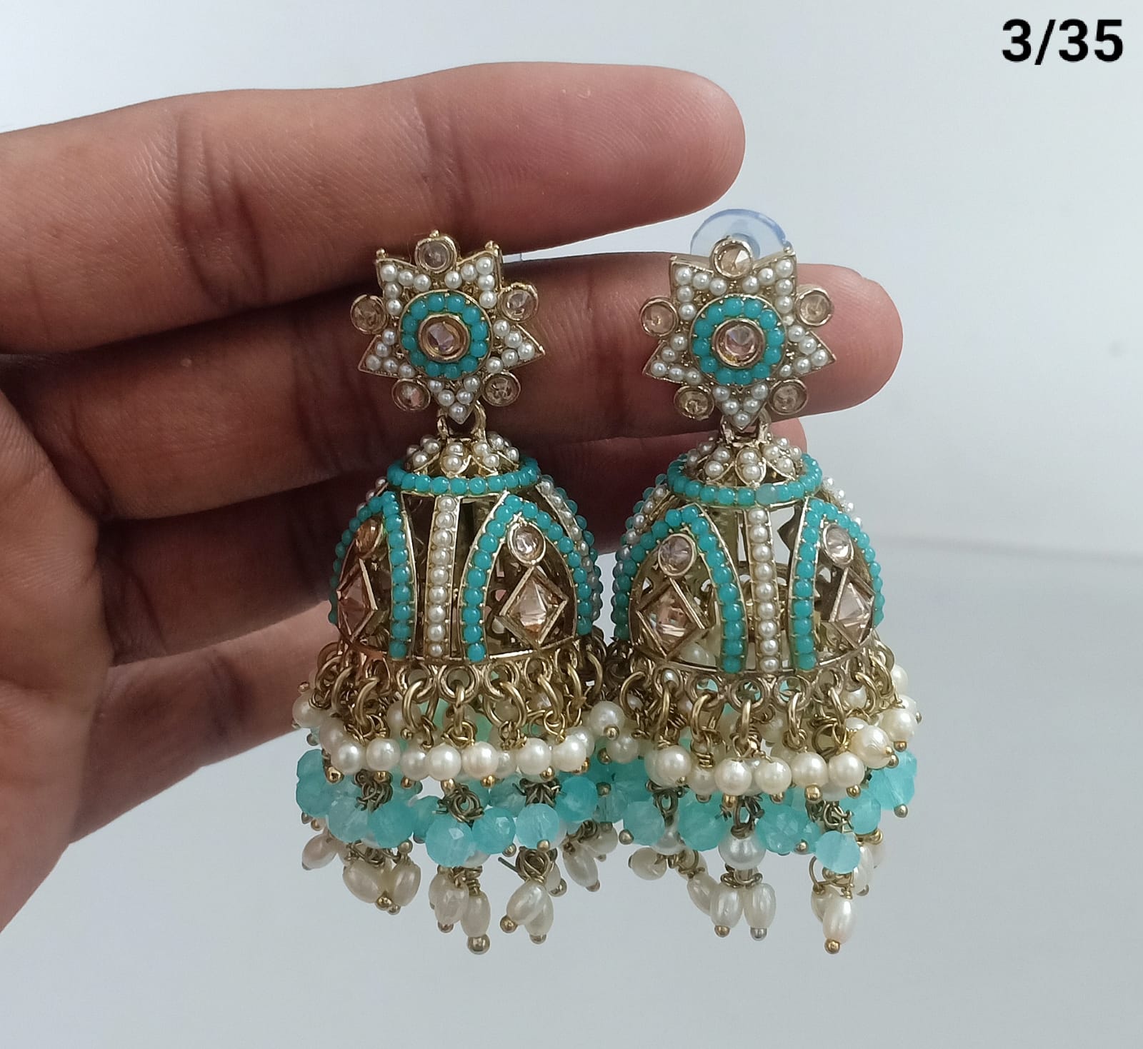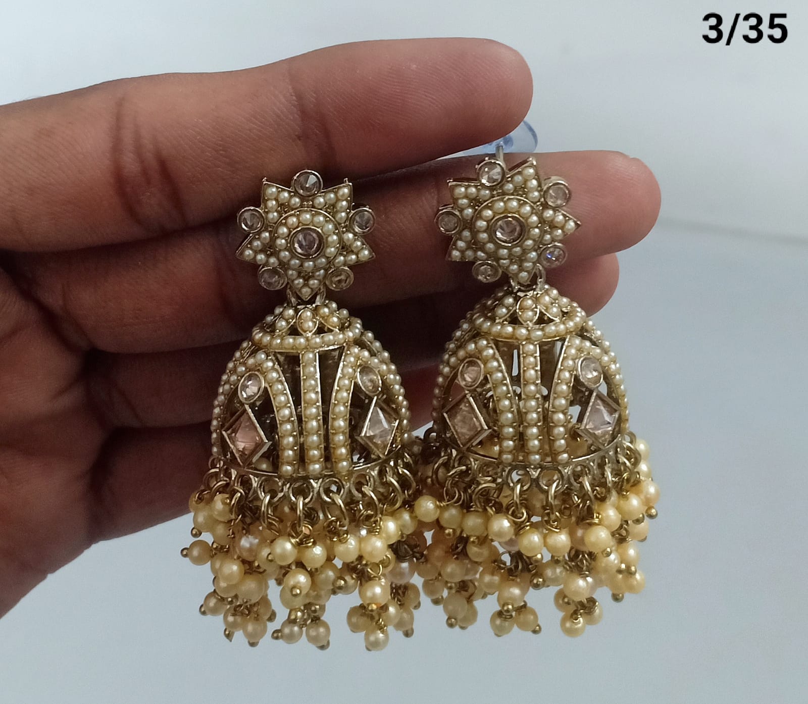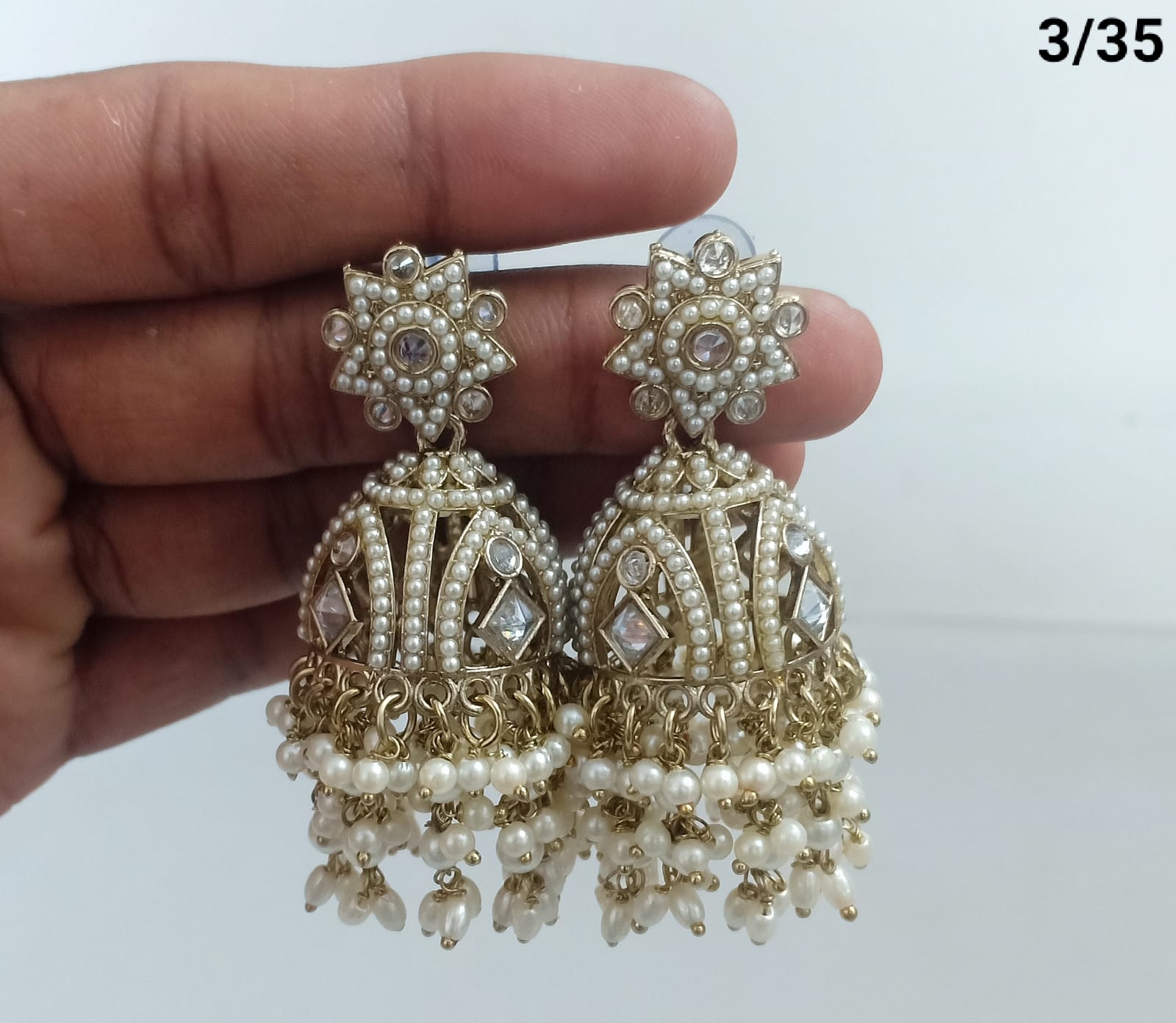 Lucent Handcrafted Kundan Pearl Jhumka Earrings – Statement Ethnic Drop Design