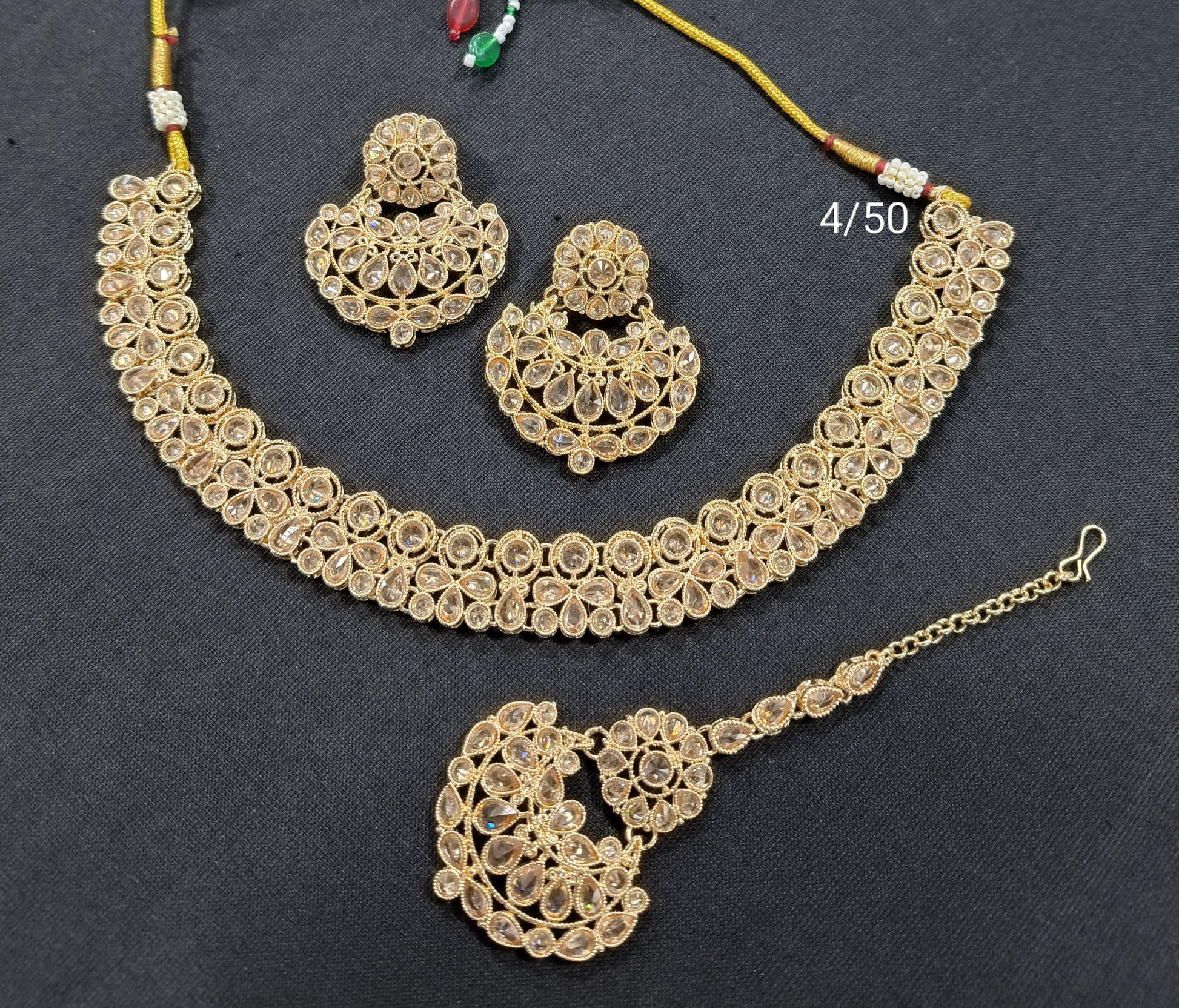 • Design: Traditional choker necklace with matching chandbali earrings & mangtika