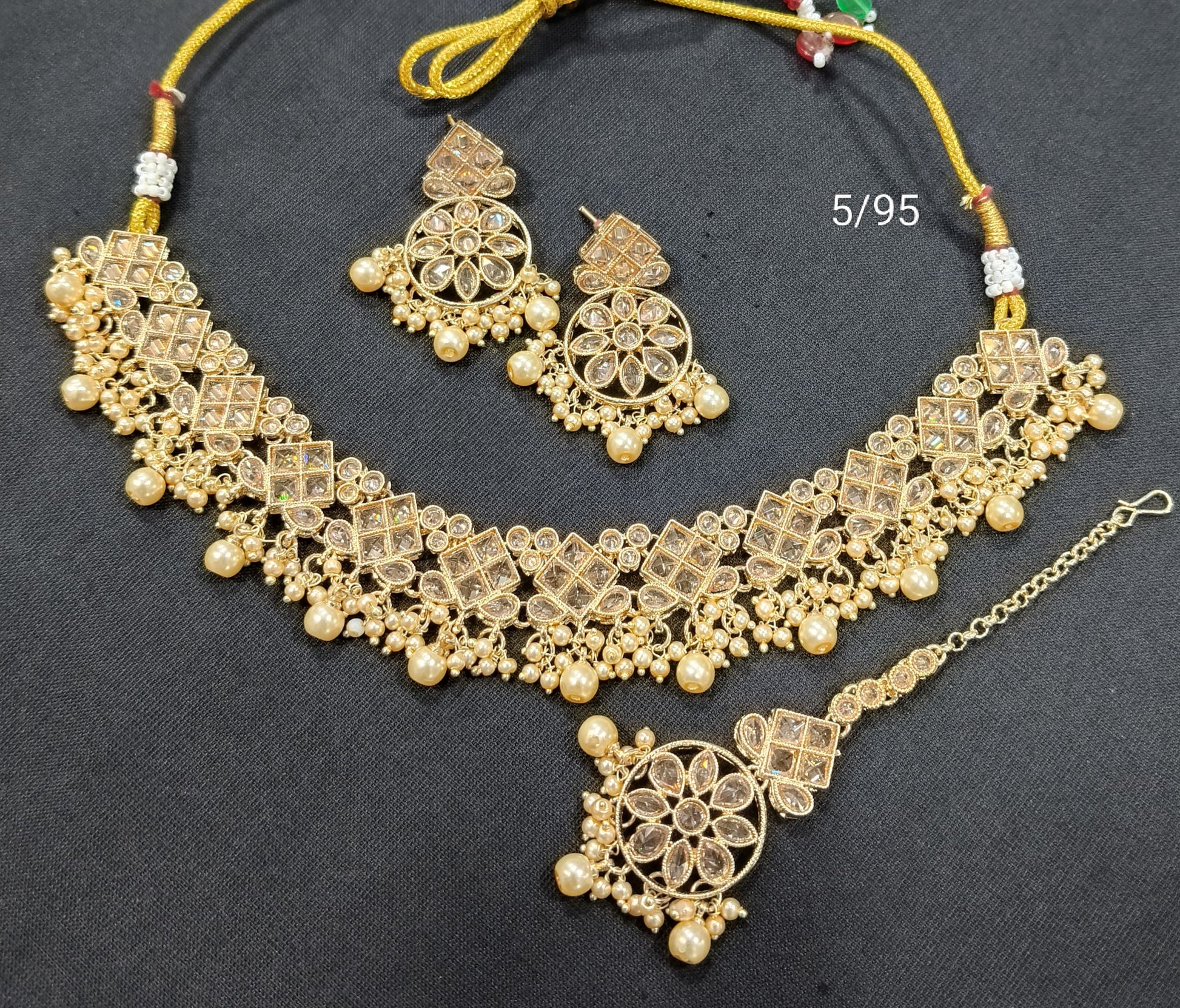 Design: Traditional choker necklace with matching chandbali earrings & mangtika