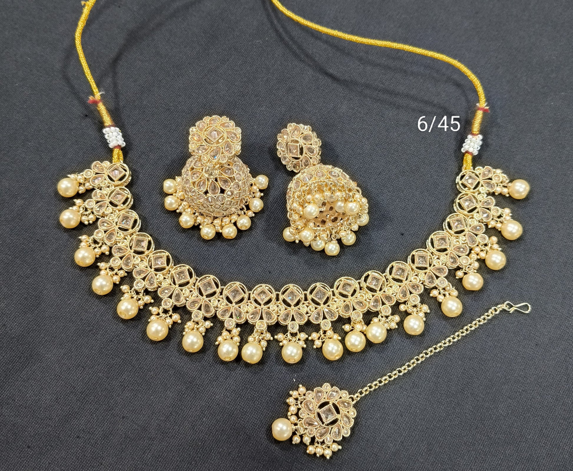 LucenteMarket CZ Bridal Choker Necklace Set with Earrings and Maang Tikka